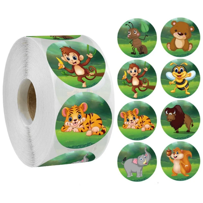Наклейки для наград: В комплект входит рулон стикеров из 500 штук (или листов с 50-300 штук), включающий 8 различных поощрительных фраз с милыми животными.