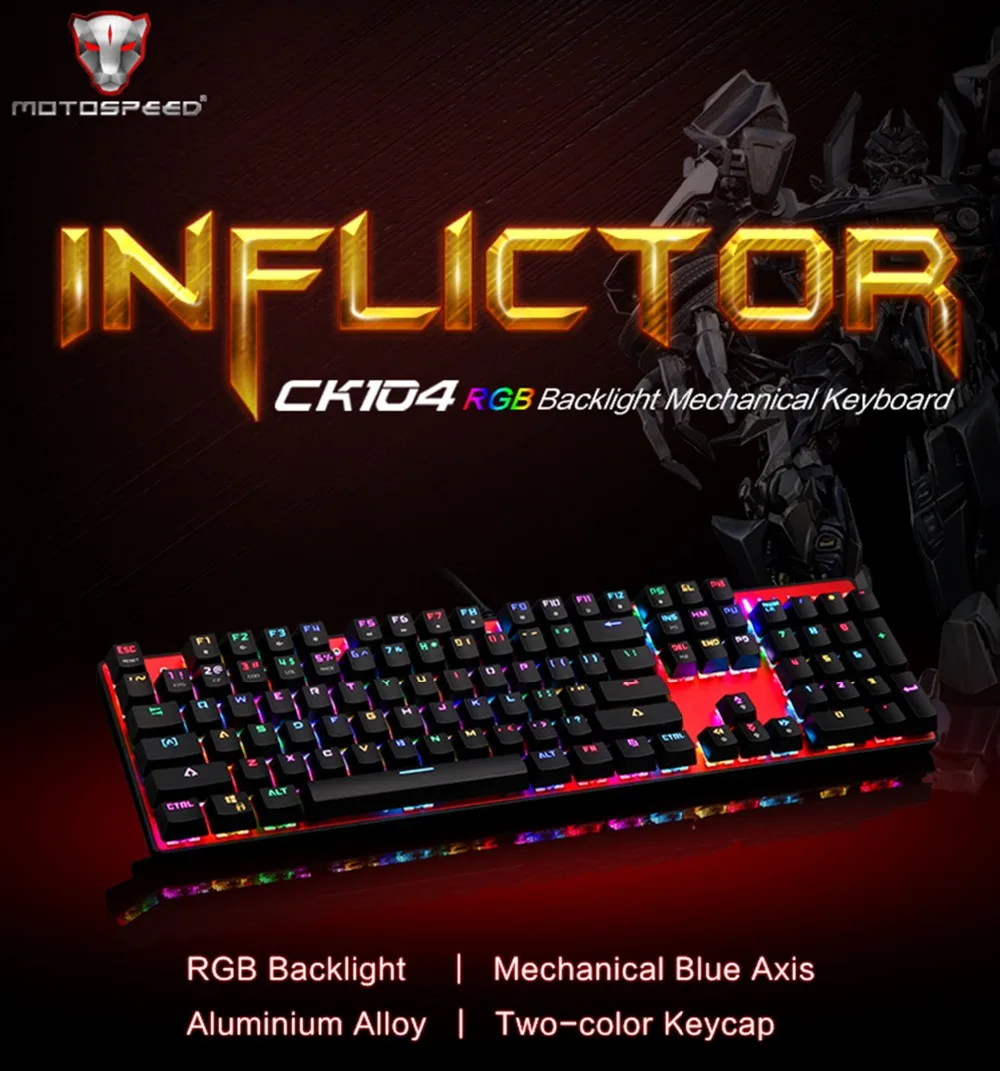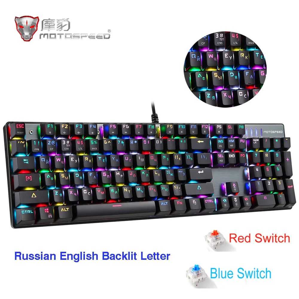 MOTOSPEED CK104 русская английская французская механическая клавиатура синие красные переключатели металлические клавиши светодиодная RGB клавиатура с подсветкой