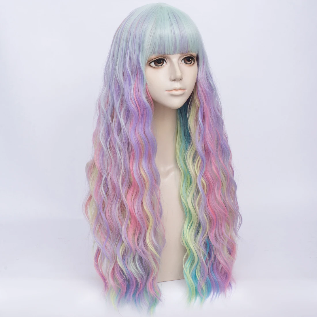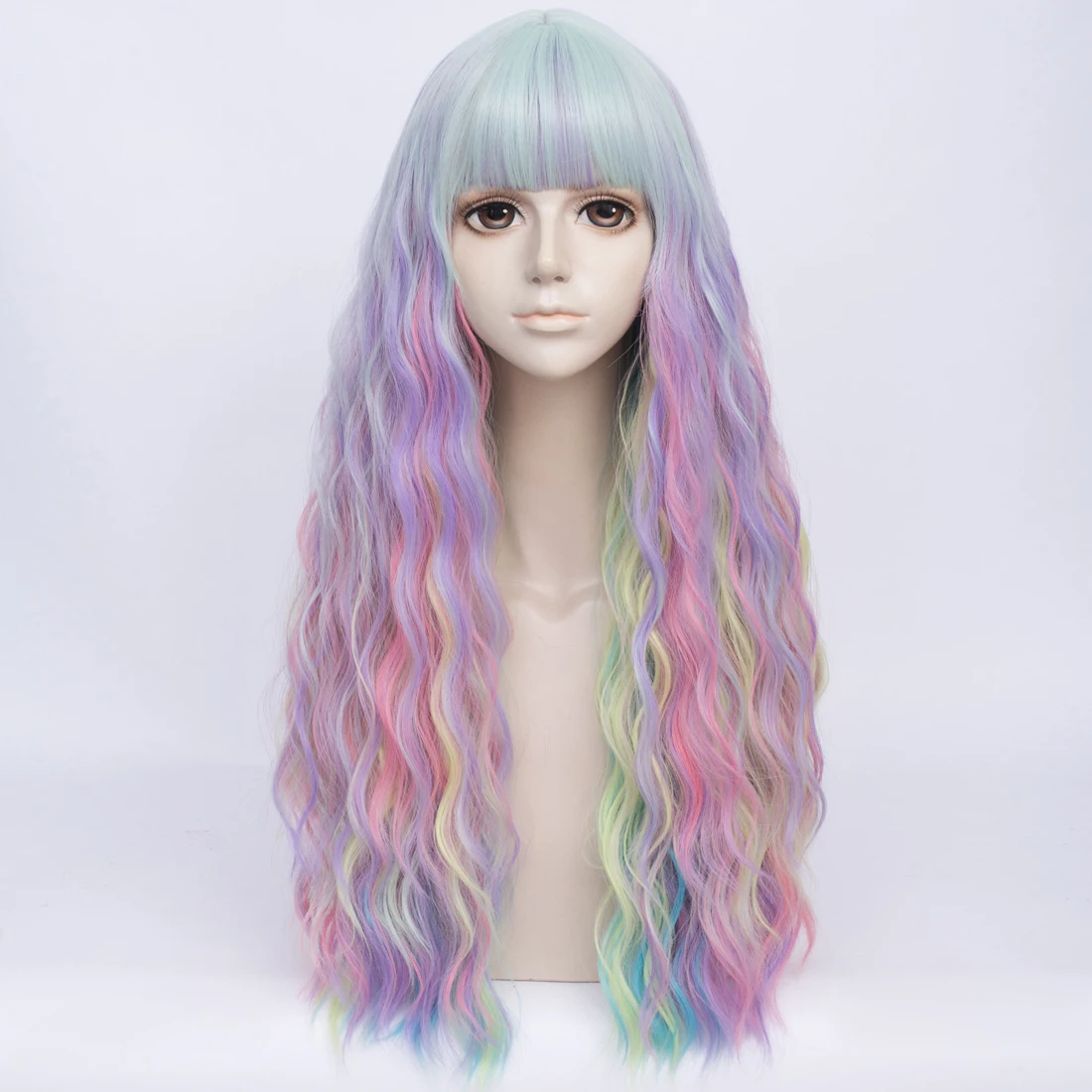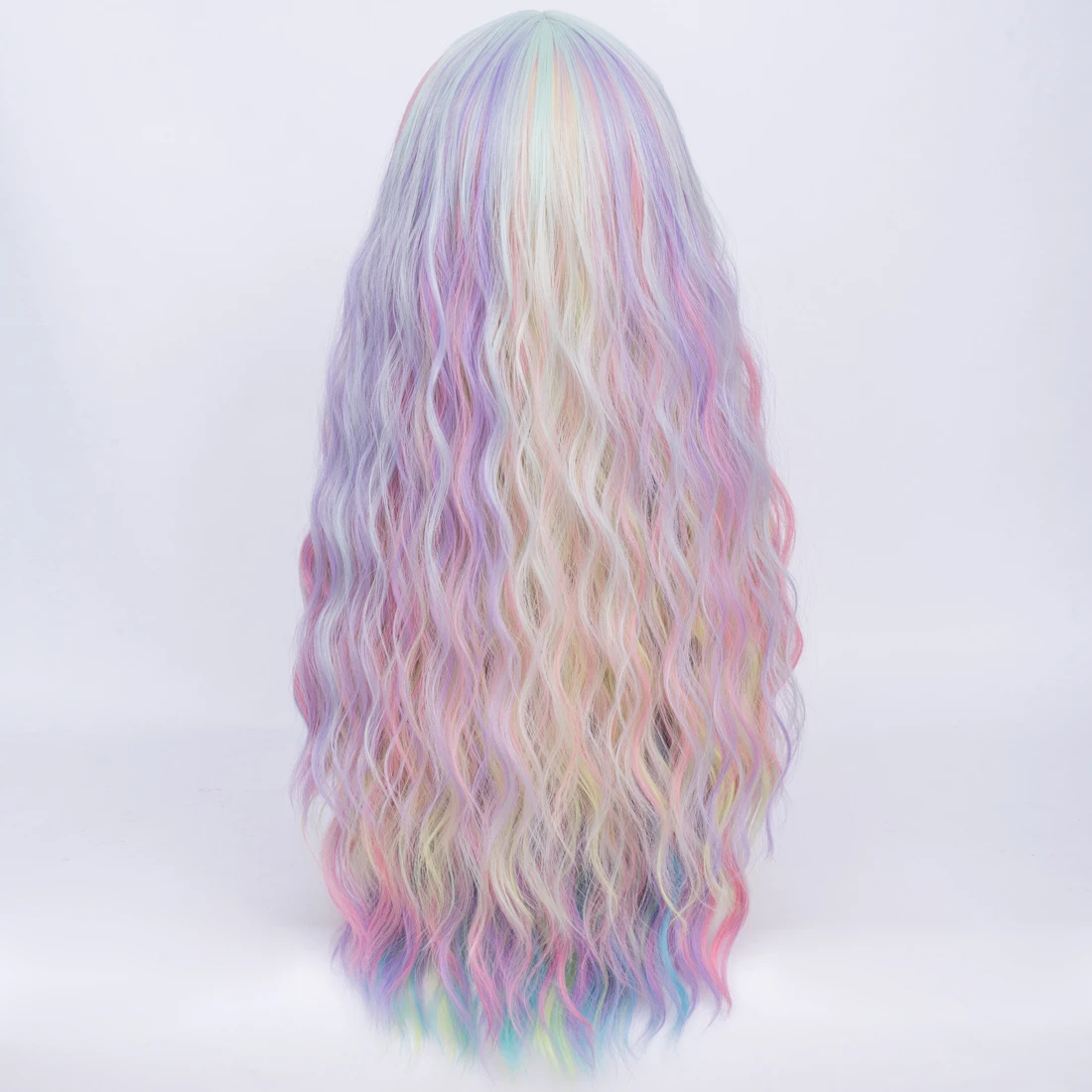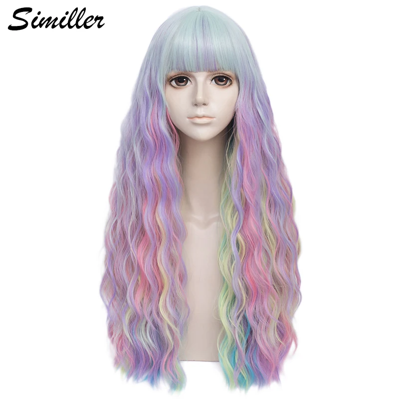 Длинные женские синтетические пастельные цветные парики Similler, термостойкие кудрявые волосы, Радужный парик русалки для косплея, с челкой