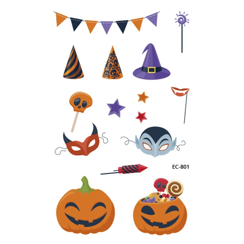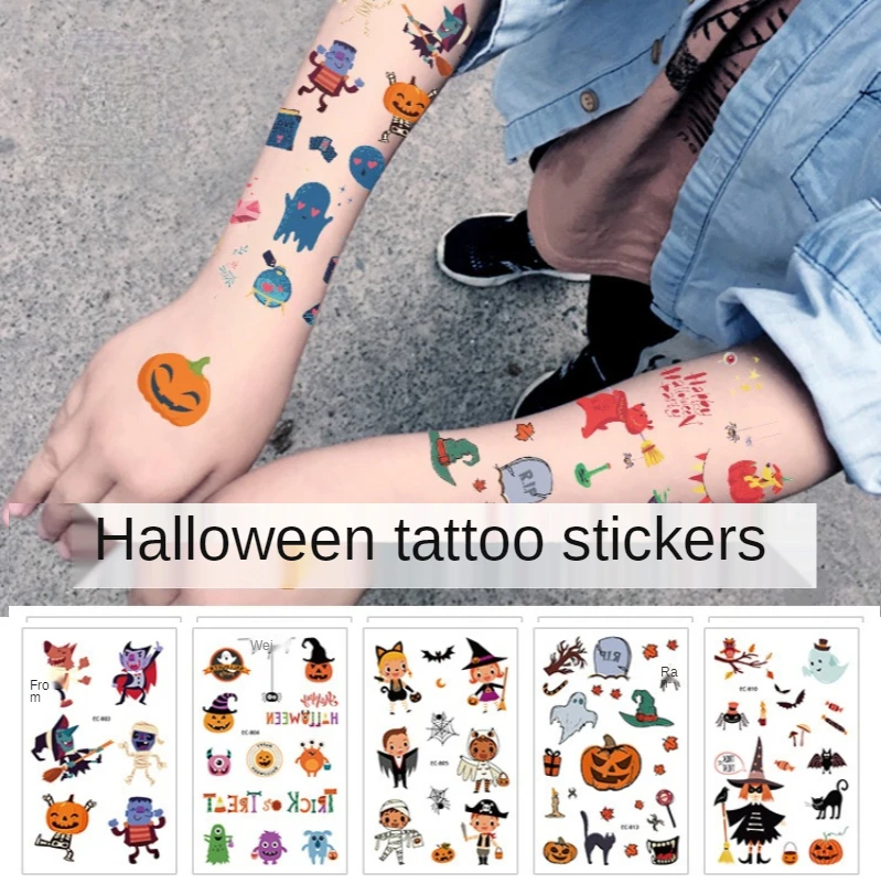Мультфильм наклейки для временных татуировок тыквенный призрак ведьма летучих мышей временные Водонепроницаемый татуировки золотого и серебряного стикеры вечерние Декор детские наклейки-татуировки
