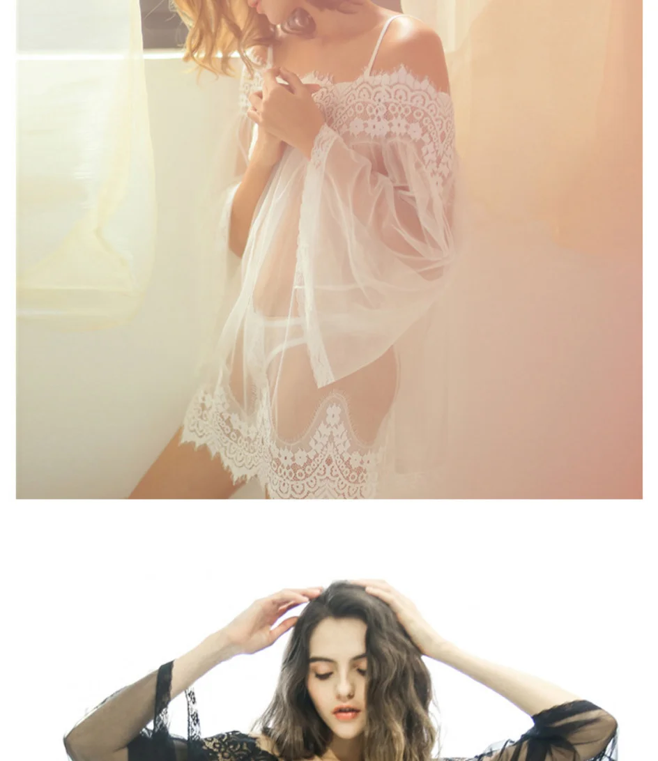 Европейское американское сексуальное нижнее белье, соблазнительная прозрачная сетчатая эротическая ночная рубашка с кружевными краями и прорезями, Пижама