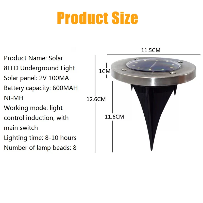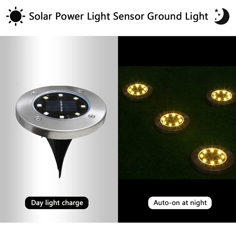 Светодиодный ночник на солнечной батарее для газона, 8 светодиодов,...
