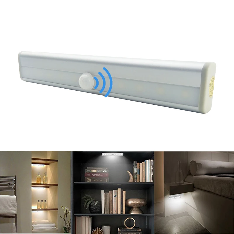 PIR датчик движения Ночной светильник Светодиодная подсветка под шкаф светильник Авто Вкл/Выкл 6/10 светодиодов для кухни шкаф для спальниUSD 13,41/Шт/Лот 1