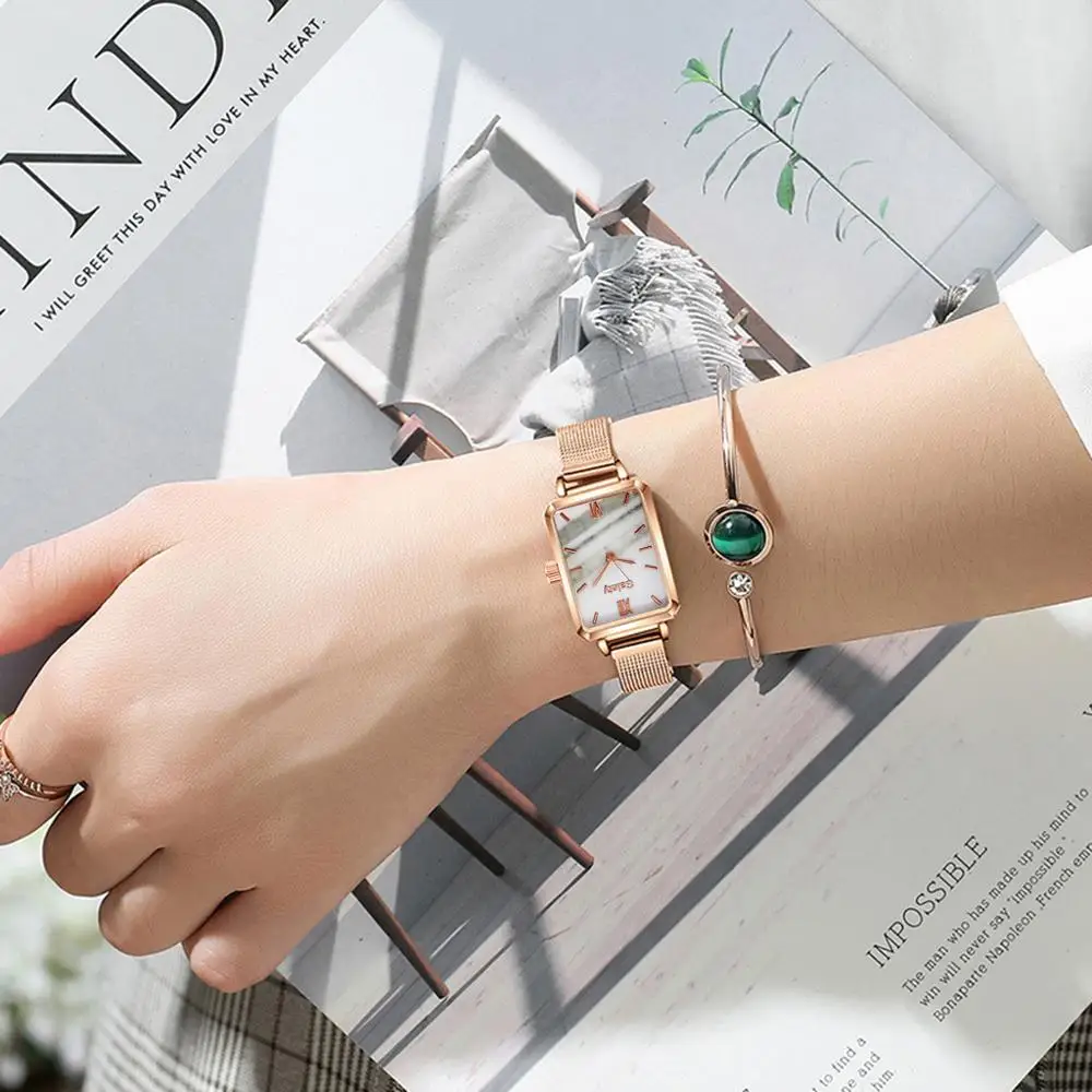 Часы женские кварцевые Gaiety с квадратным циферблатом, брендовые Модные Простые Роскошные с зеленым циферблатом, с сетчатым браслетом из розового золота