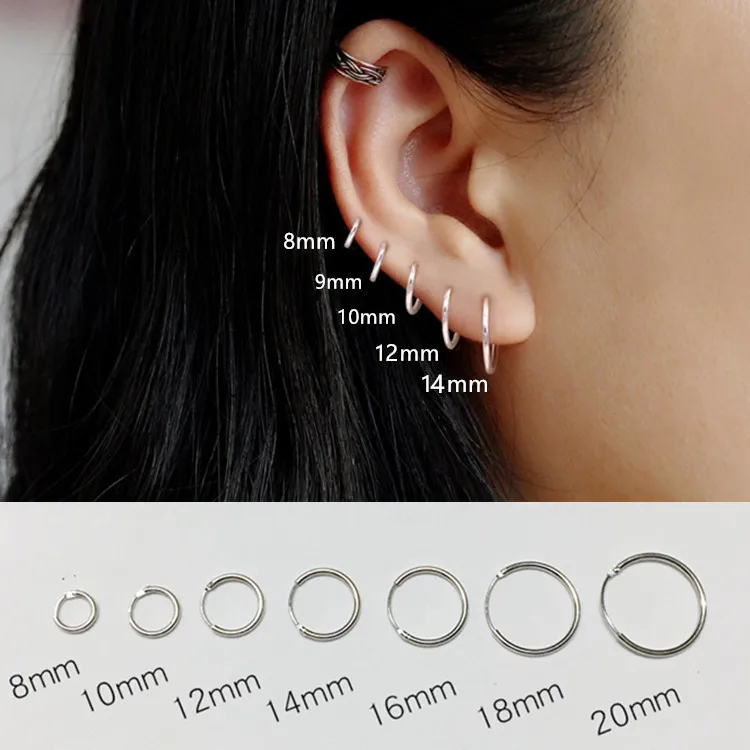 Высокое качество 1 пара 6-18 мм небольшие серьги-кольца серебряный цветной круг обруч серьги, нержавеющая сталь, для мужчин и женщин серьги клип серьги Huggie