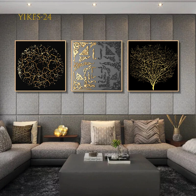 Абстрактные картины-Триптих для гостиной, минималистские Золотые ли...