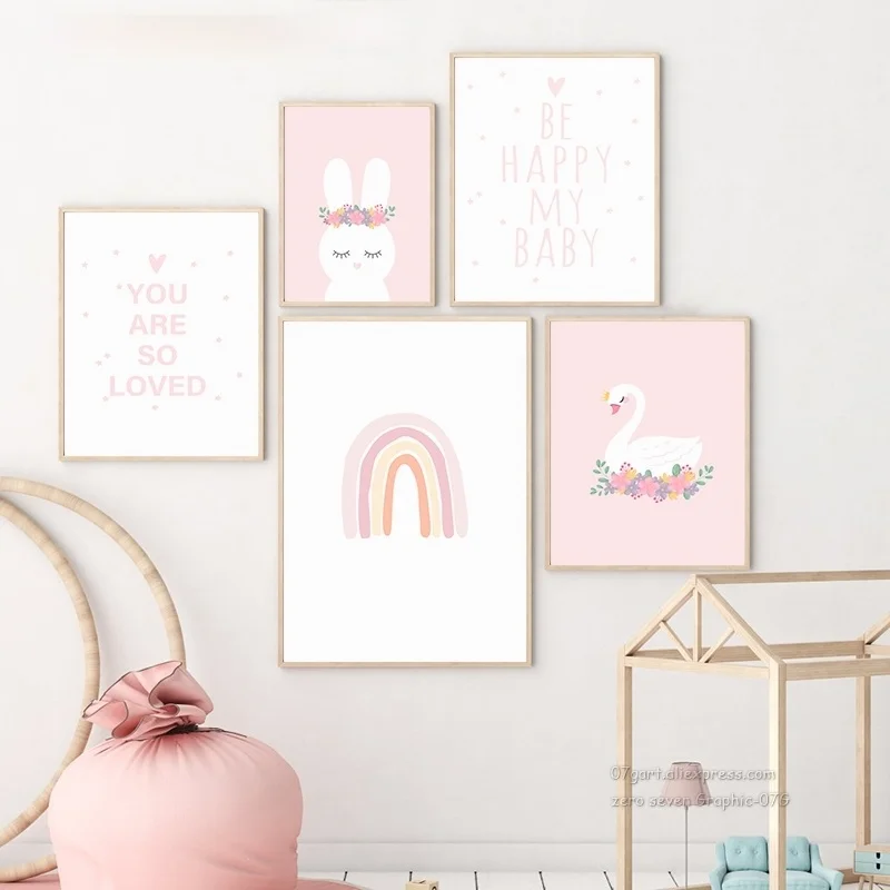 Алмазная картина 5D, скандинавский рисунок мечтательных животных, розовый, Радужный цветок, корона, лебедь, кролик, постер для украшения комнаты для маленьких девочек