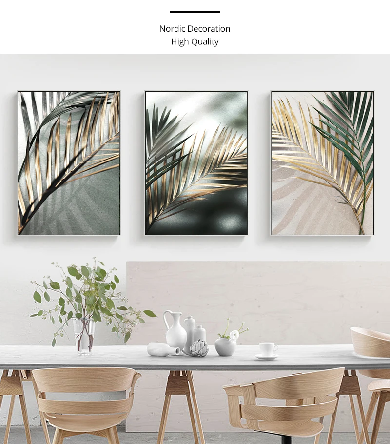 Постер на холсте с изображением золотых пальмовых листьев и растений, скандинавский настенный художественный принт, ботаническое Скандинавское украшение, картина, художественное оформление, домашний декор