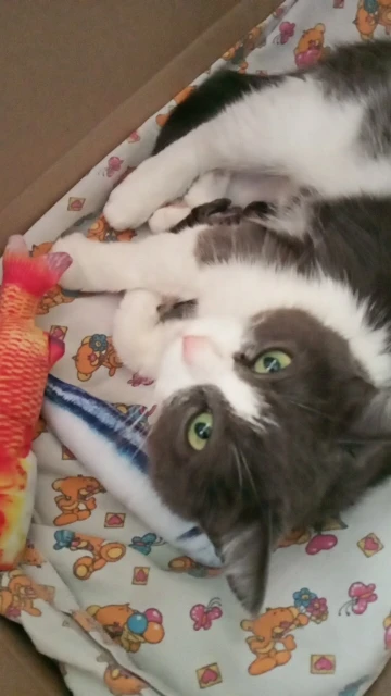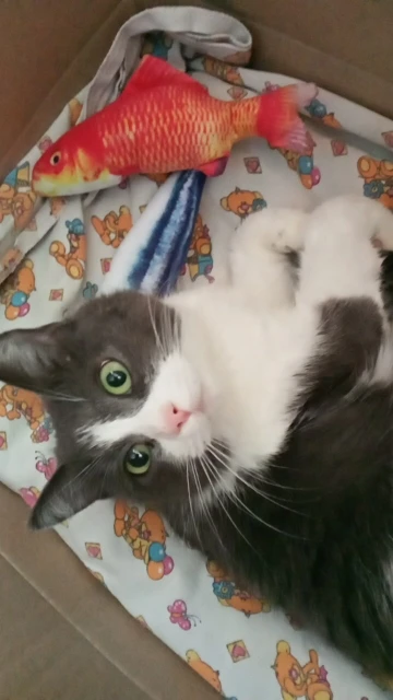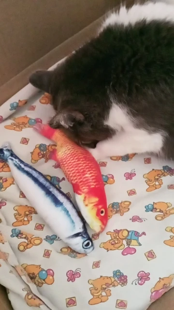 Симпатичная небольшая рыбка. Кошки проявили внимание не больше, чем к любой другой игрушке