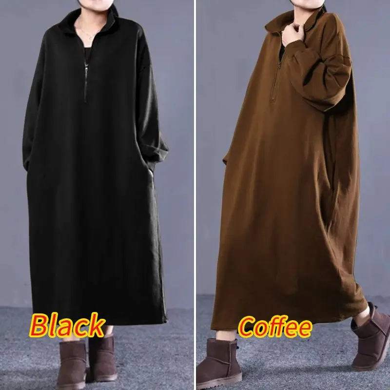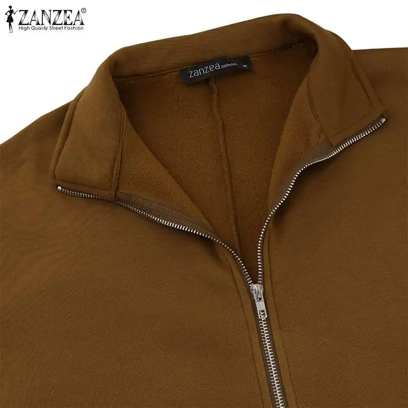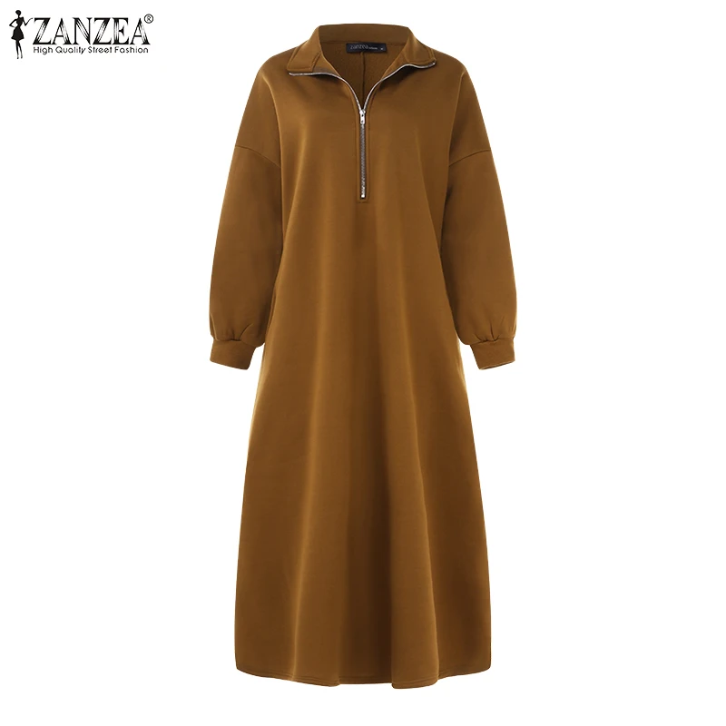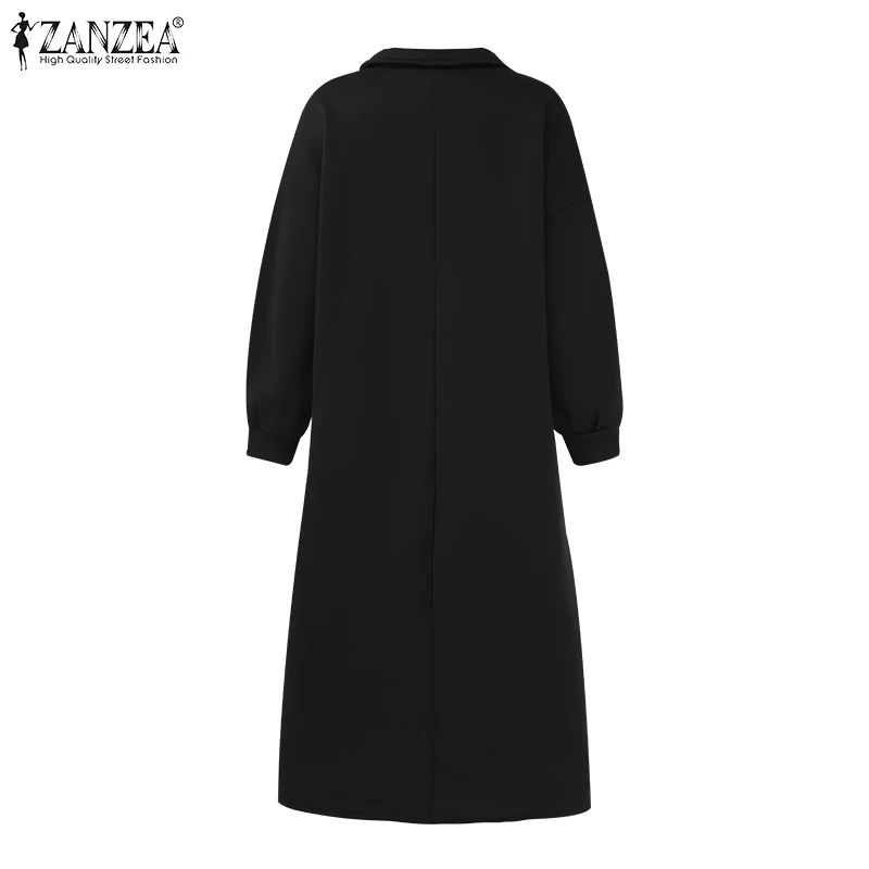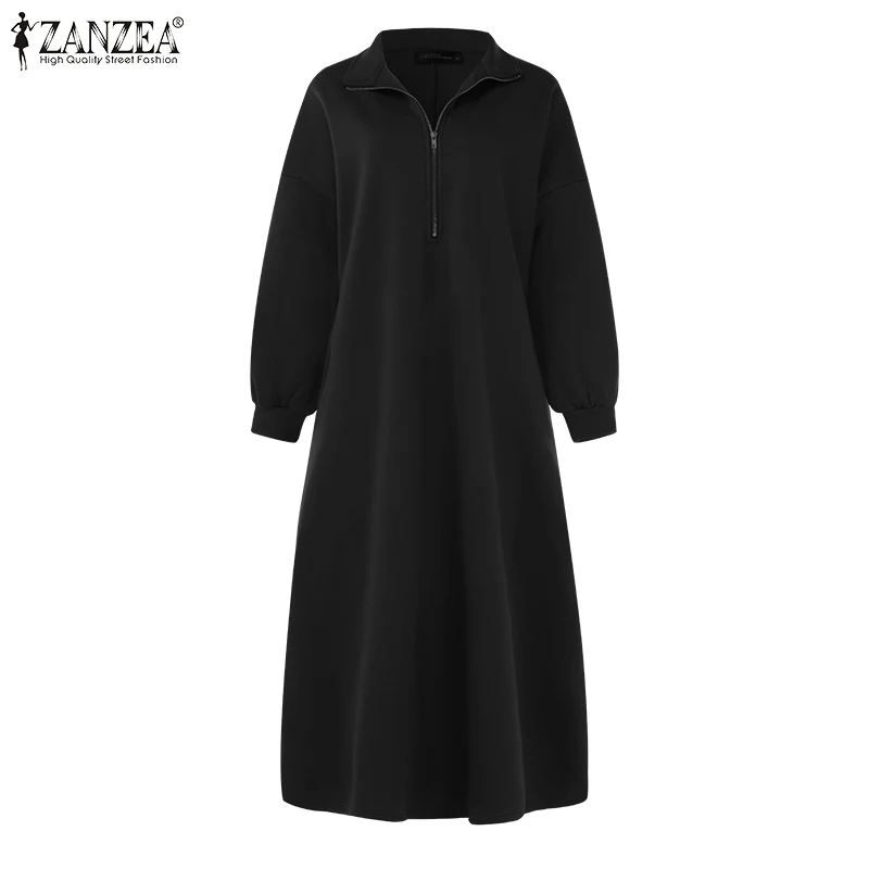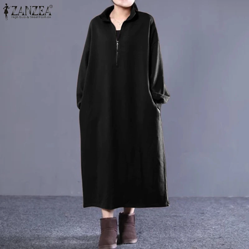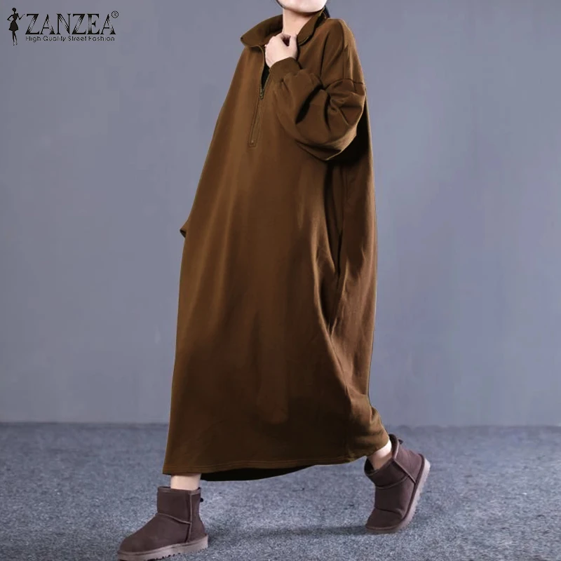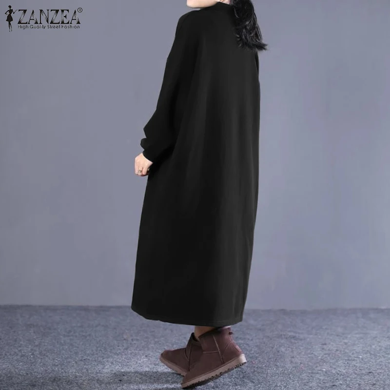 ZANZEA 2021 осеннее длинное платье макси с длинным рукавом, длинное платье-свитшот, женские платья, повседневные мешковатые платья большого размера с высоким воротником