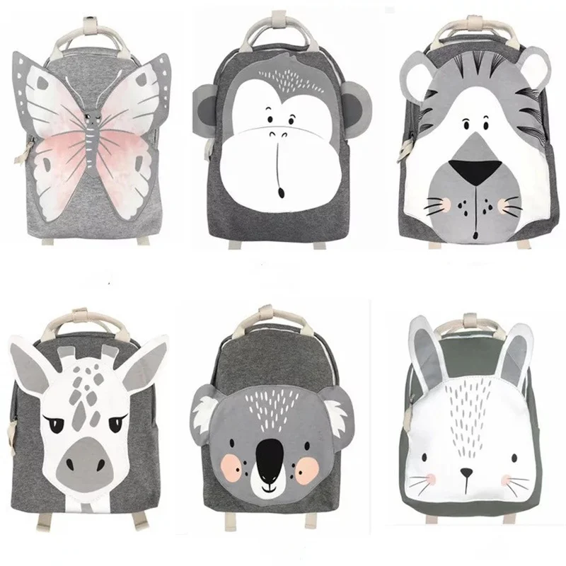 Детский рюкзак в скандинавском стиле, школьный ранец с рисунком животных, кроликов, бабочек, Львов для малышей и детей дошкольного возраста