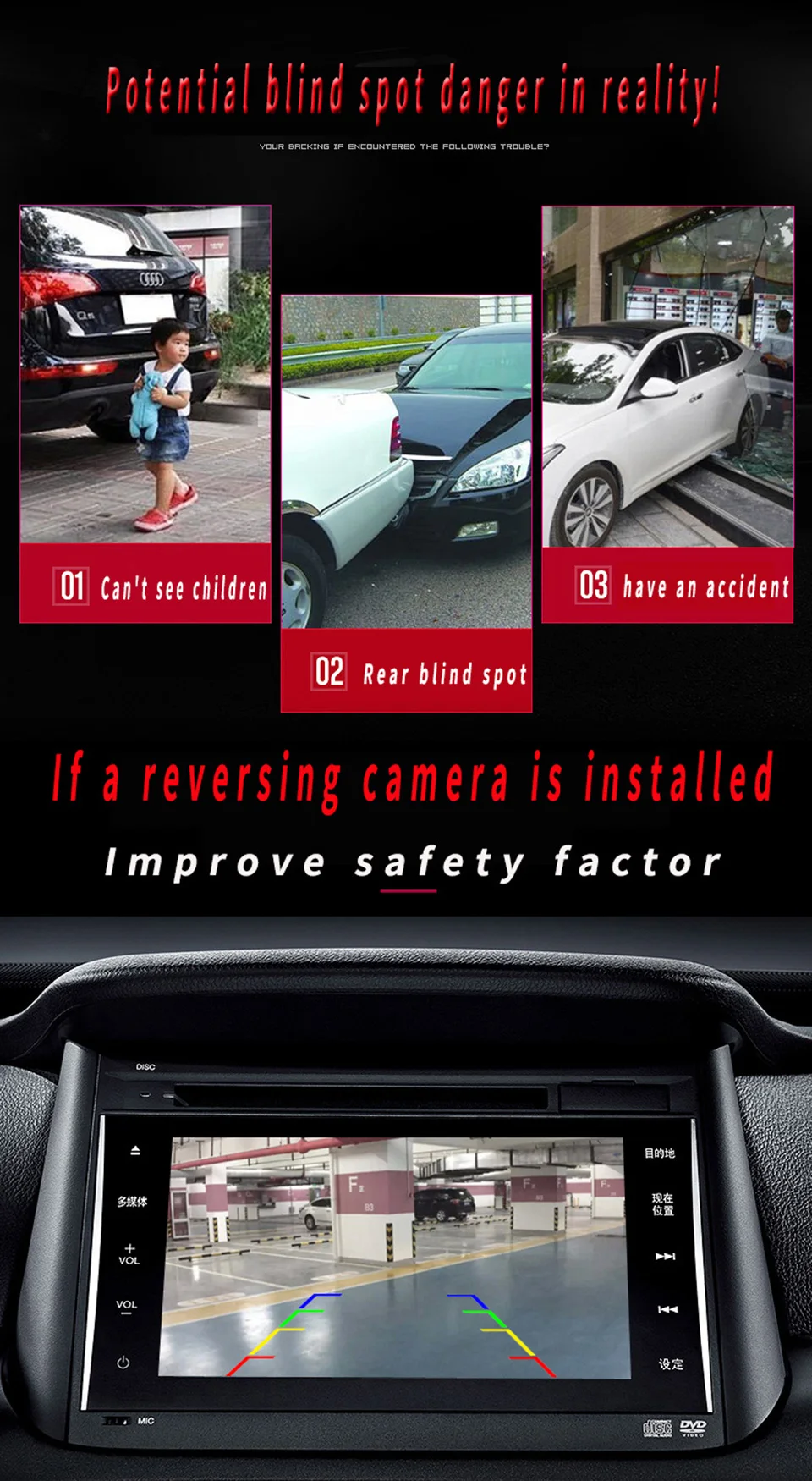 Автомобильная камера заднего вида с функцией ночного видения, HD 1080p, 180 градусов, CCD, рыбий глаз