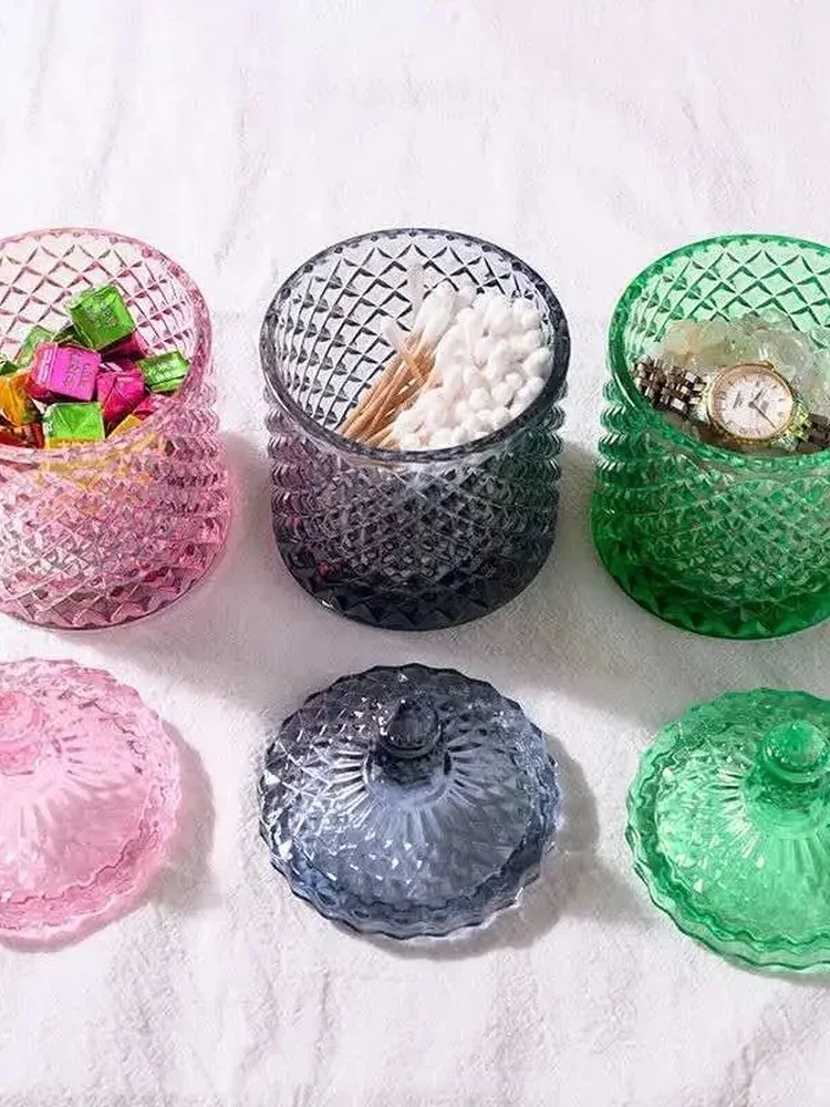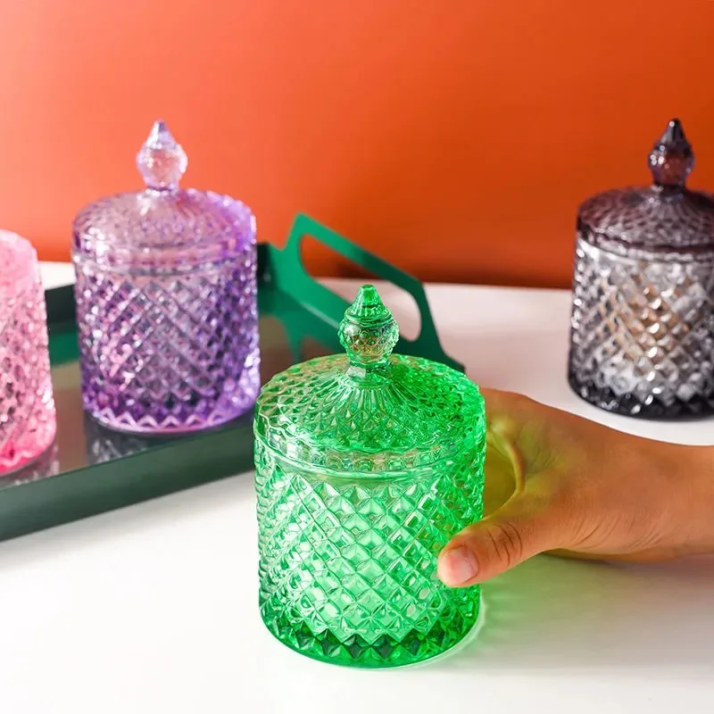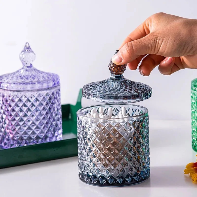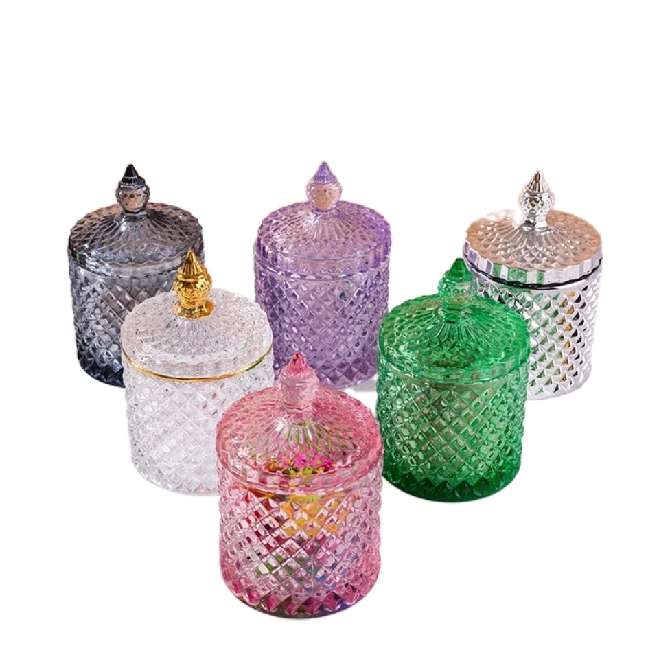 2 шт.лот цветная прозрачная стеклянная банка для хранения 300 мл крышка консервированные сахарные банки Алмазная коробка для ватных дисков органайзер для ватных дисков