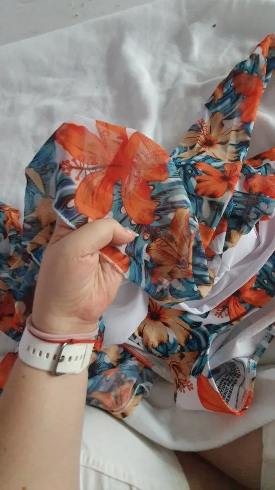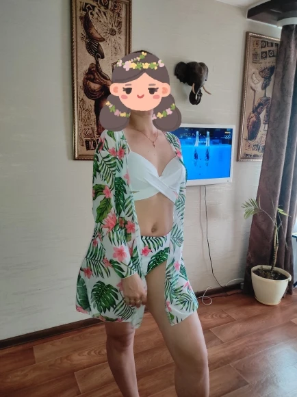 This is my second swimwear from here. First was L, this is XL. The trio looks great, vivid colors. The cover up is a bit smaller but is still great. I recommend the store. After the mistake wr had flawless comunication and the oder orders arrived quickly, well packed and exact the same what I ordered.