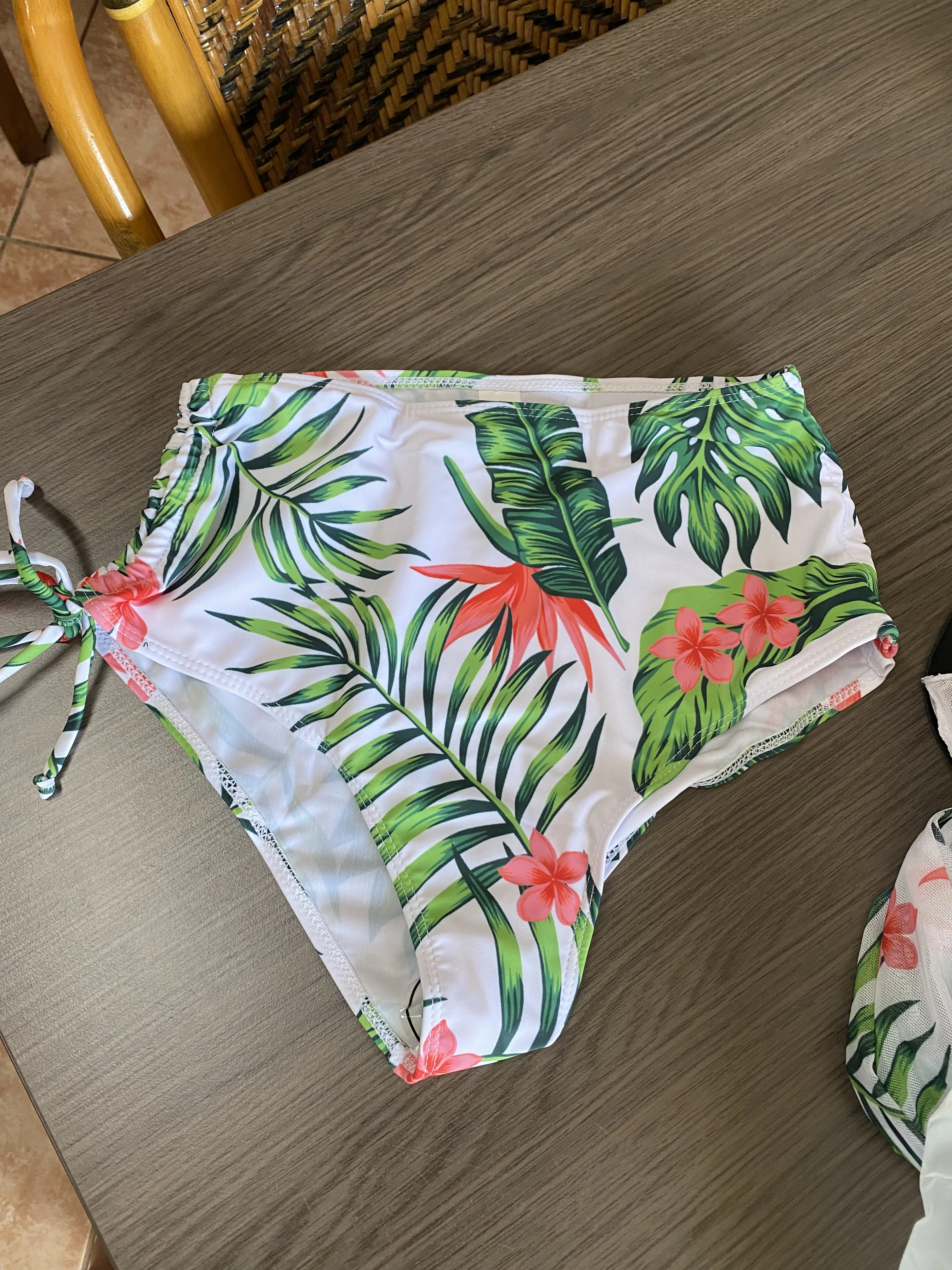 El bikini es tal cual la descripción, pero el tallaje viene un poco pequeño, especialmente la parte de abajo.