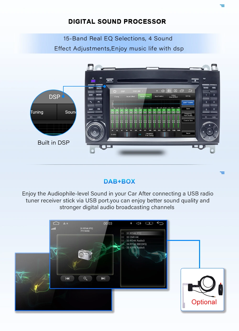 Автомобильное DVD-радио, 2 Din, GPS, DSP, 4 ГБ, 64 ГБ, для Mercedes Sprinter W906, Benz B200, класс A, B, W169, W245, Viano, Vito, W639, Multimeida, Carplay