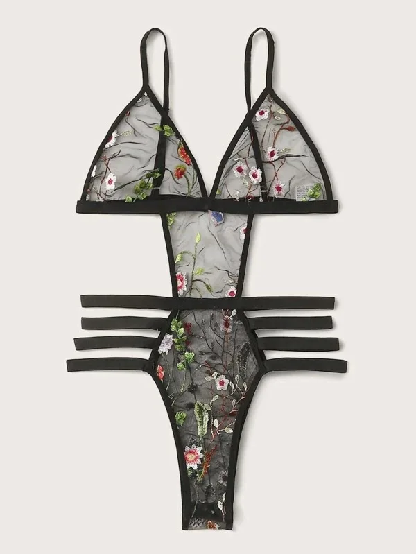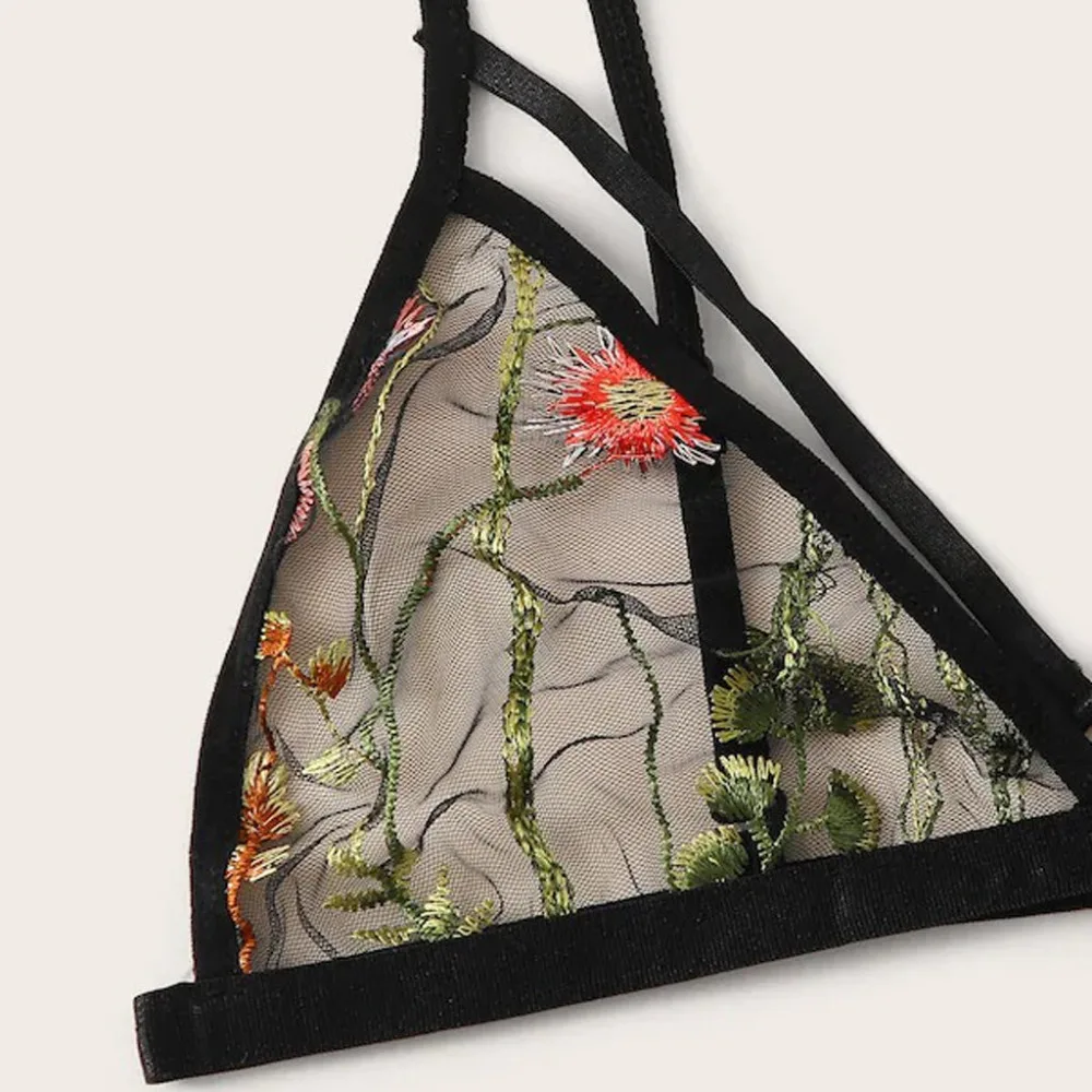 Комплект женского кружевного нижнего белья, с вышивкой, эротическое искушение