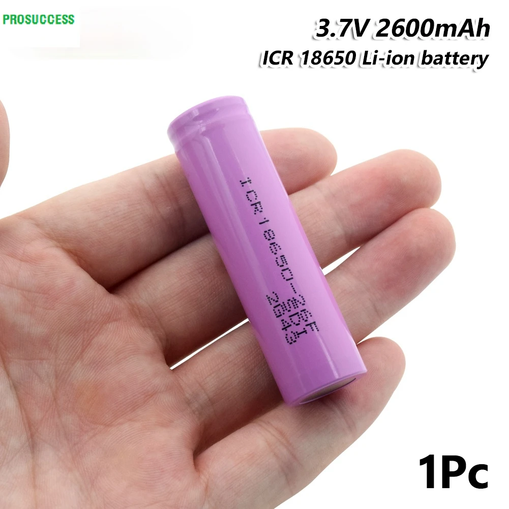 1/2/4/6/8/10 штук 3,7 V Розовый Перезаряжаемые ICR 18650-26F 2600 мА/ч, литий-ионный батареи с плоским верхом 18650 БатареяОсобенности100% Новинка!Высокая дренажная перезаряжаемая батарея 18650, максимальный ток до 20А, очень сильный.Стабильная скорость разряда, Отсутствие эффекта памяти.Низкая повторная работа, защита от короткого замыкания и перегрузки по току.Безопасные и экологически чистые, очень длинные круги для зарядки, отлично подходят для длительного ежедневного использования.Высокая плотность энергии, и имеет дополнительный длительный срок службы для всех ваших устройств с питанием от батареи.Обеспечивает отличные решения непрерывного источника питания для ваших устройств.Широко используется на электронной сигарете, фонарь, внешний аккумулятор, микрофон, радио, геймпад, лазерная указка, флэш-светильник, налобный фонарь, камера, игрушка, пульт дистанционного управления, мини-вентилятор, портативный принтер, аварийный светильник, домофон, портативный DVD, инструмент, аудио оборудование, Воздушная модель, Ноутбук и другие электронные устройства, которые нуждаются в ICR 18650 ячейках.Технические характеристикиМодель: ICR 18650-26FЕмкость: 2600 мАчЗарядка Напряжение: 4,2 VНоминальная Напряжение: 3,7 VТок разряда: макс. 20АПерезаряжаемый: >1000 циклов, теоретическиХимия: li-ionВерхняя часть батареи: плоскаяЦвет: розовыйВес нетто: около 40 г/шт.Размер (HxD): 6.5X1.8 см/2.56X0.71"Предупреждение:Перед размещением заказа убедитесь в типе батареи вашего устройства.Пожалуйста, держите их в сухом и прохладном месте (мы дадим вам пластиковый чехол).Пожалуйста, избегайте короткого замыкания в чехол для генерации высокой температуры.Не запускать его до выхода из строя, иначе он не будет заряжен снова.Не оставляйте в огне или жаре.Не прокалывайте, не повреждайте и не разбирайте.Не смешивайте свежие батареи с использованными батареями.Посылка в комплекте1/2/4/6/8/10x18650 батареи