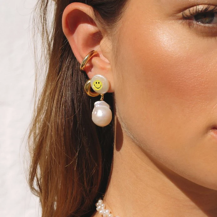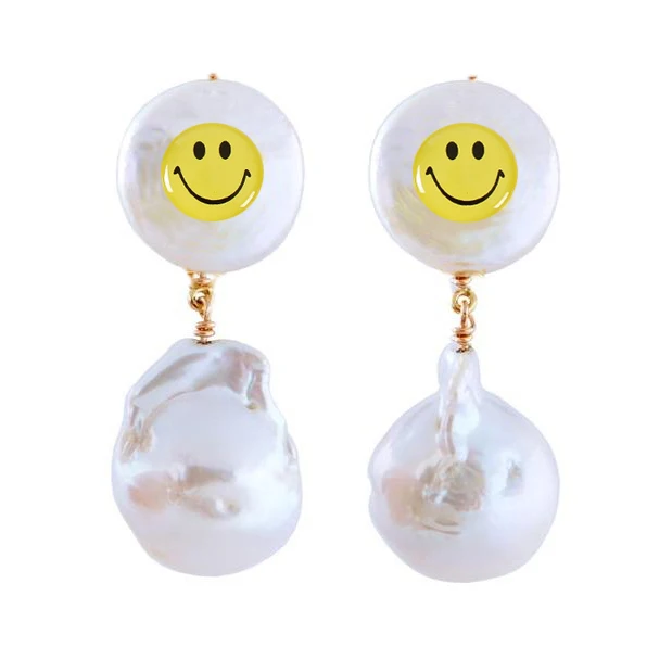 Женские жемчужные серьги, жемчужные серьги желтого цвета, с улыбающимся смайликом