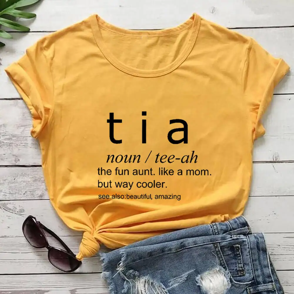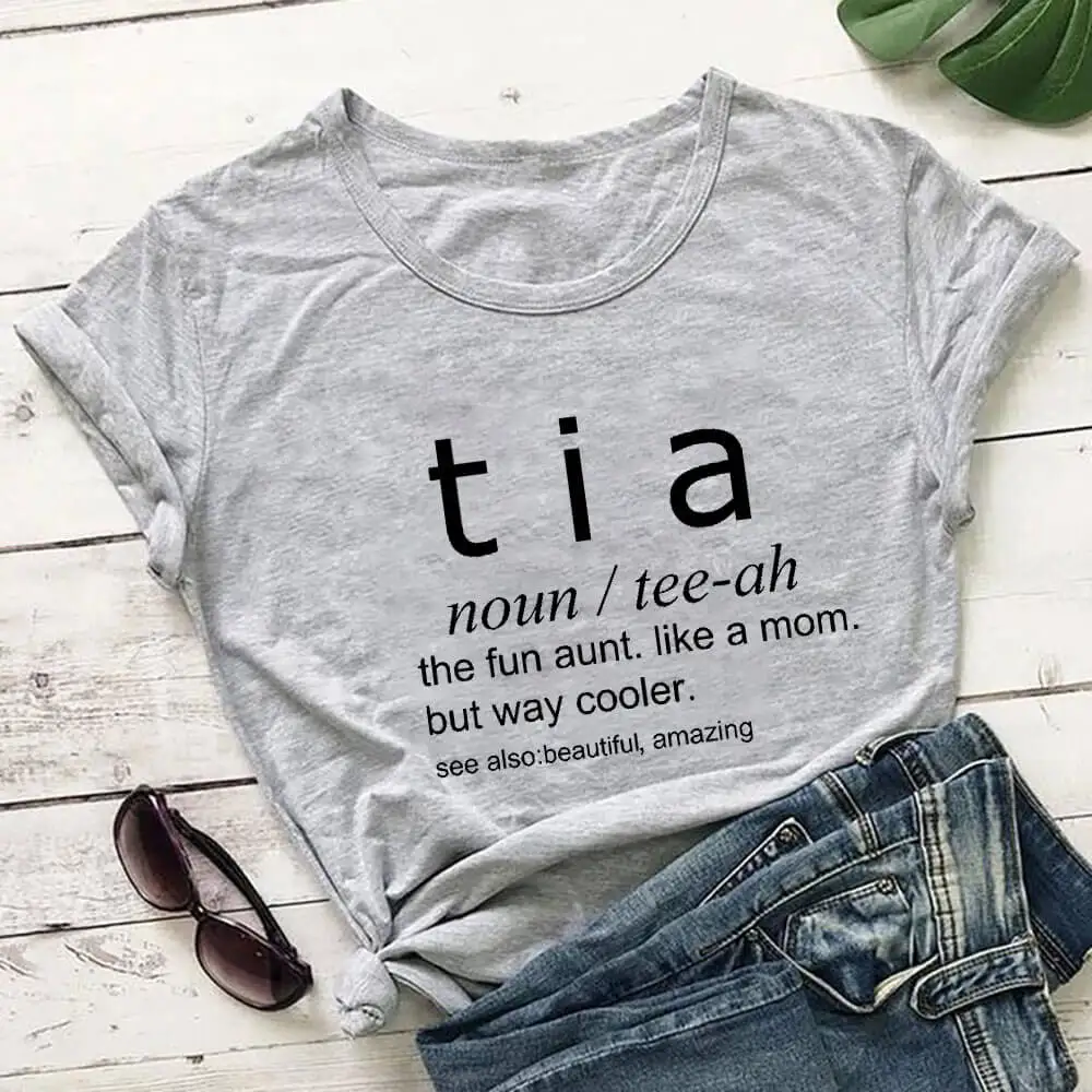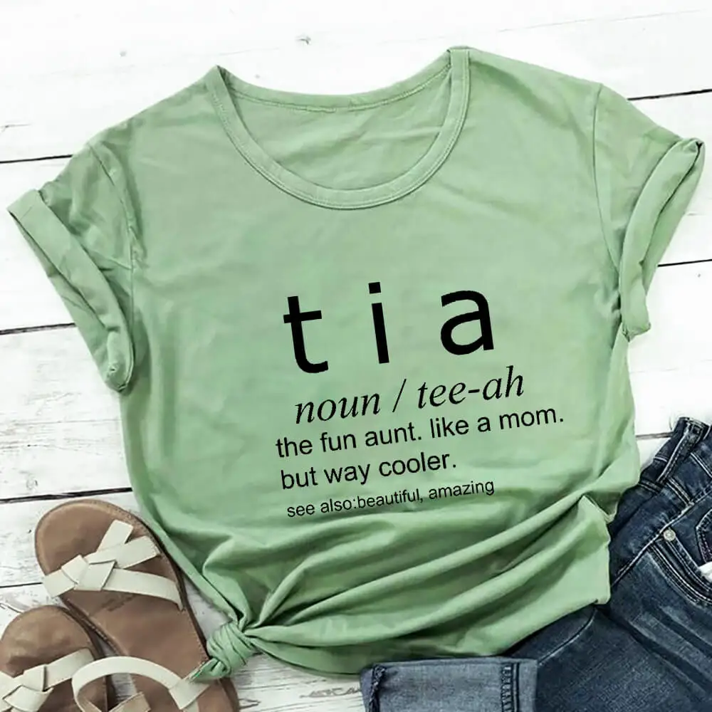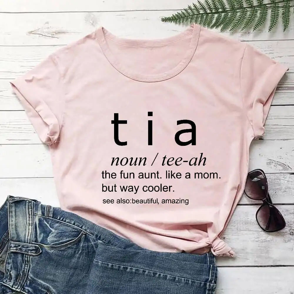 Tia, принт с сердцем, футболка в испанском стиле Auntlife забавная ...