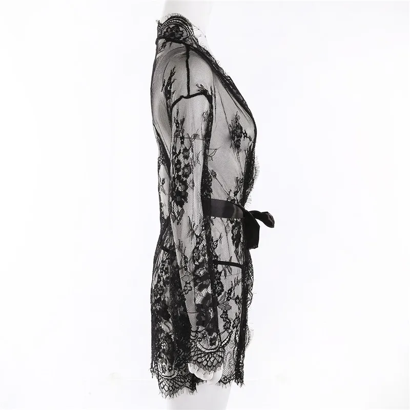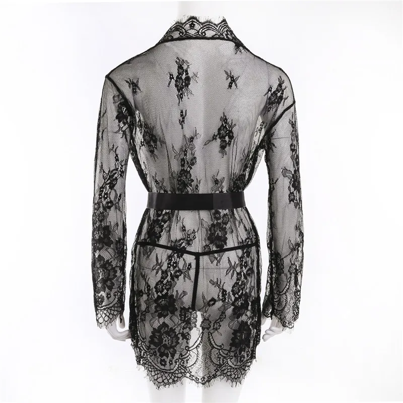 Сексуальное Кружевное женское нижнее белье, Эротическая ночная рубашка, летнее Прозрачное платье для сна, однотонная кружевная Пижама, банный халат, ночная рубашка