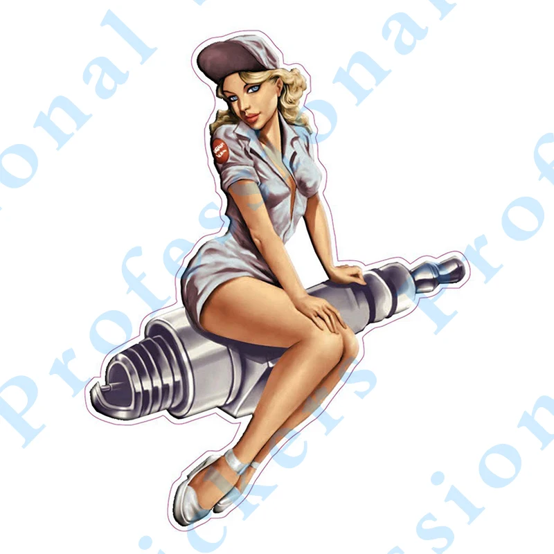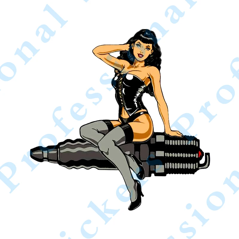 Свеча зажигания заколка девушка автомобиль наклейки сексуальный мультяшный Графический интересный Decalss мотоциклетные наклейки водонепроницаемые