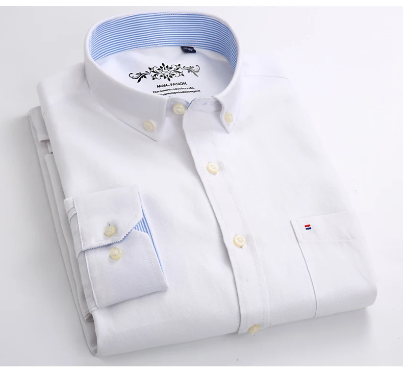 Мужская хлопковая рубашка из ткани Оксфорд, повседневная классическая рубашка с длинными рукавами, одним накладным карманом и воротником на пуговицах, Осень-зима 2019