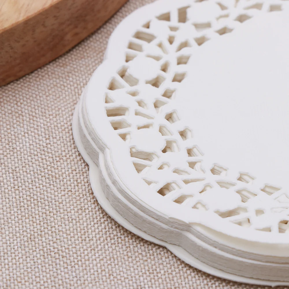 Этот товар представляет собой упаковку из 100 шт. белых кружевные бумажные салфетки, которые изготавливаются для широкого применения, таких как выпечка, подкладка для упаковки торта, украшение вечерние чных тарелок и многого другого. Изготовлены из высококачественного материала, безопасны и безопасны. Также отлично подходит для масловпитывающей бумаги на кухне.