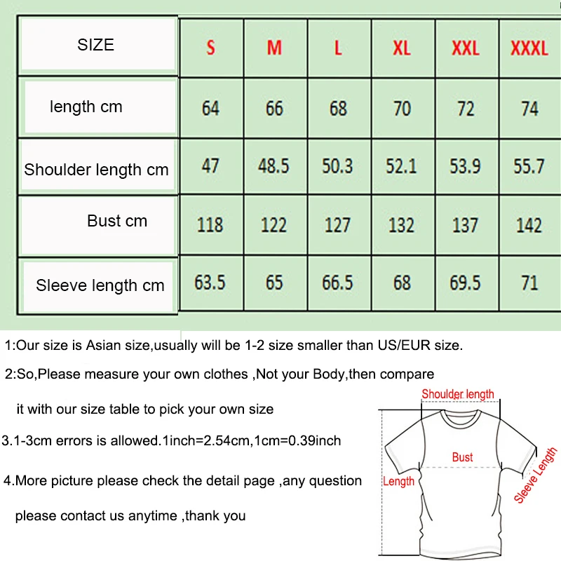1: наш размер азиатский, обычно на 1-2 размера меньше, чем американский/европейский.2: поэтому, пожалуйста, измерьте свою одежду, а не тело, а затем сравните ее с нашей таблицей размеров, чтобы выбрать свой собственный размер3,1-3 см ошибки является allowed.1inch = 2,54 см, 1 см = 0,39 дюймов