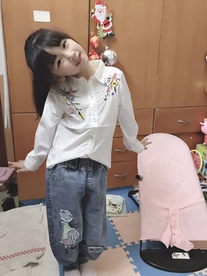 Блузка для девочек, весенне-осенняя, Детская рубашка с длинным рука...