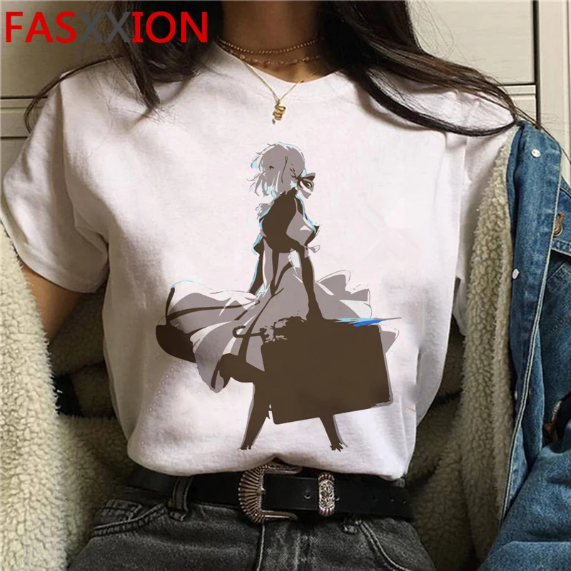 Фиолетовая футболка Evergarden, Мужская футболка с японским tumblr 2021 ulzzang, повседневная одежда, футболка, графические футболки для женщин