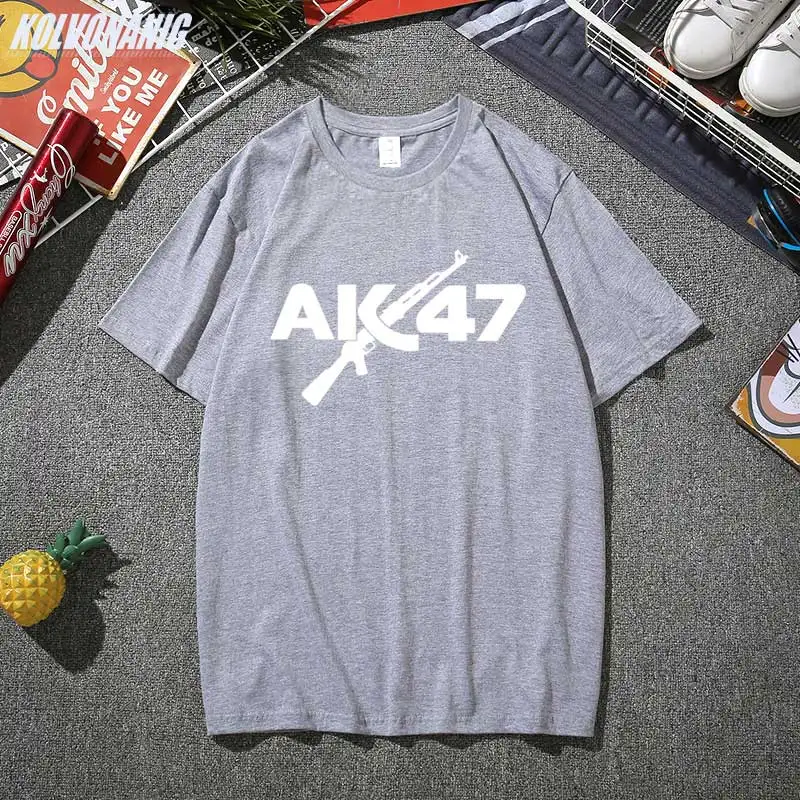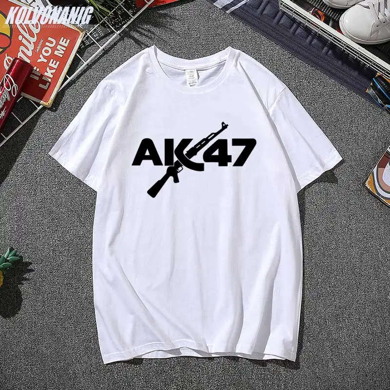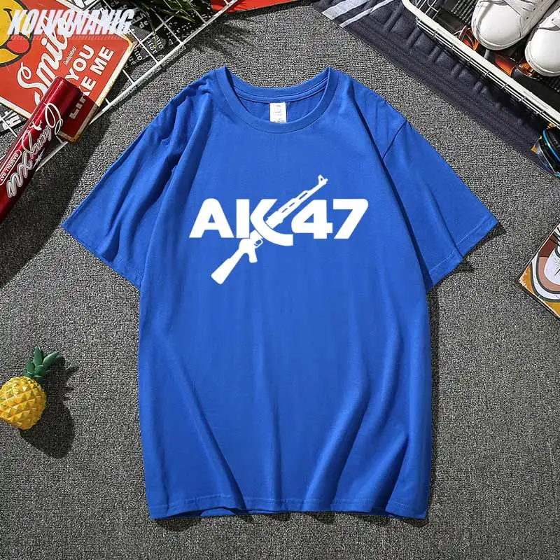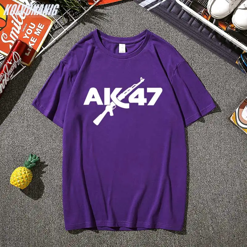 Футболки AK47 с графическим принтом пистолета, черная брендовая мужская одежда с русской символикой СССР, мужские топы
