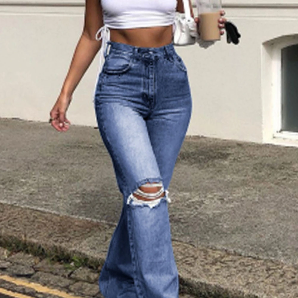 Рваные джинсы, женские расклешенные брюки, женские джинсы с высокой...