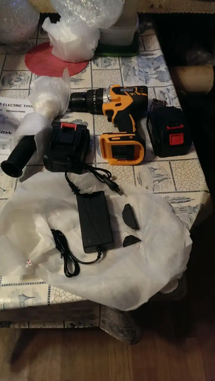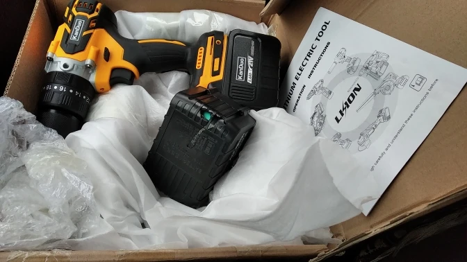 Шуруповерт сам не видел, получала жена, заказывал 26.09.2021 получил 1.12.2021, 66 дней посылка каталась по миру, доставка кароче огонь, приеду с вахты после нового года, посмотрю что за чудо и дополню отзыв.