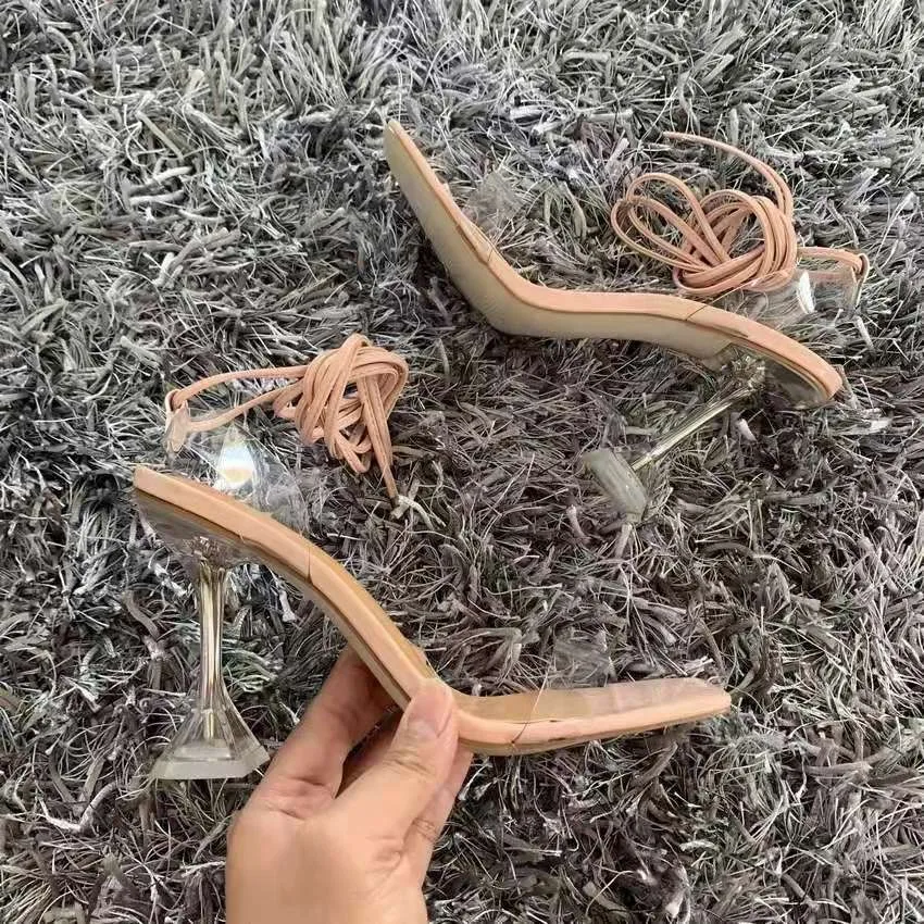 Сандалии женские на высоком каблуке, прозрачные босоножки из ПВХ, о...