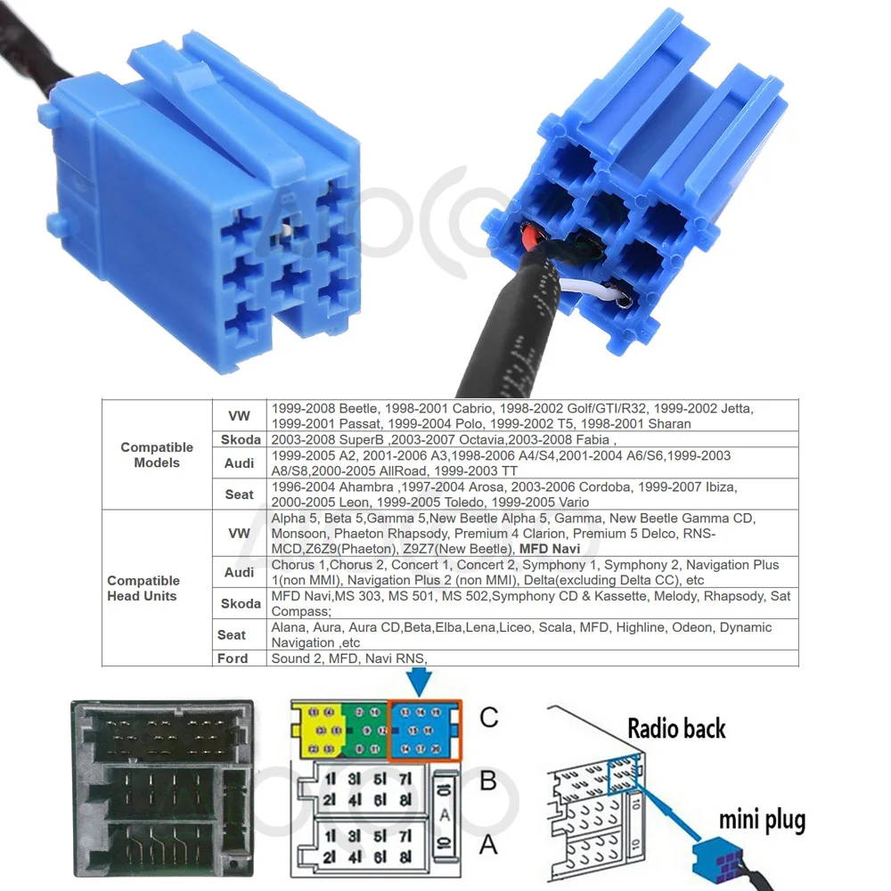 Автомобильный модуль Bluetooth 5,0, 8-контактный разъем MINI ISO, кабель AUX, адаптер для AUDI VW гамма-Хор 2, Симфония концерта Blaupunkt CD MFD Navi