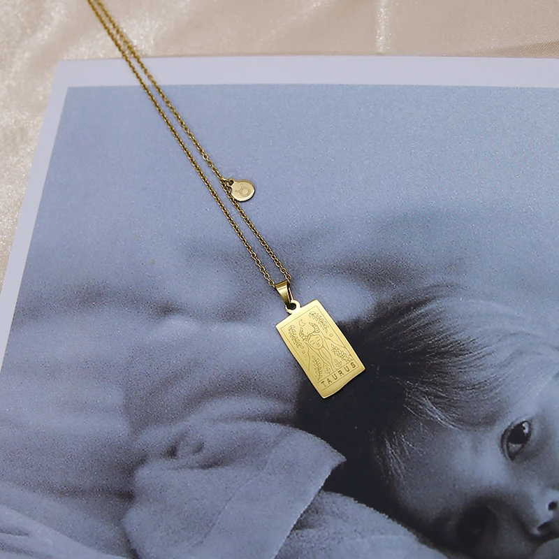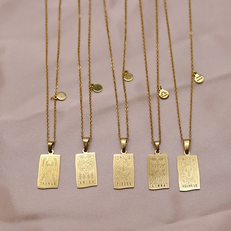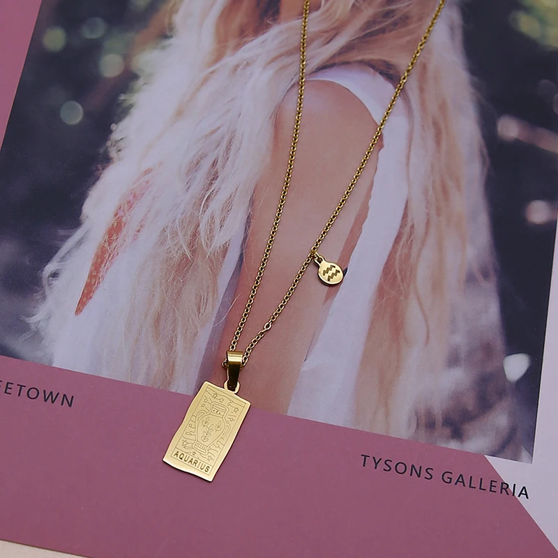 12 знаков зодиака, водонепроницаемые ожерелья для женщин, позолота 18 карат, нержавеющая сталь, квадратный гороскоп, амулет, подвеска, чокер, ожерелье