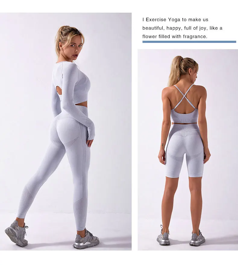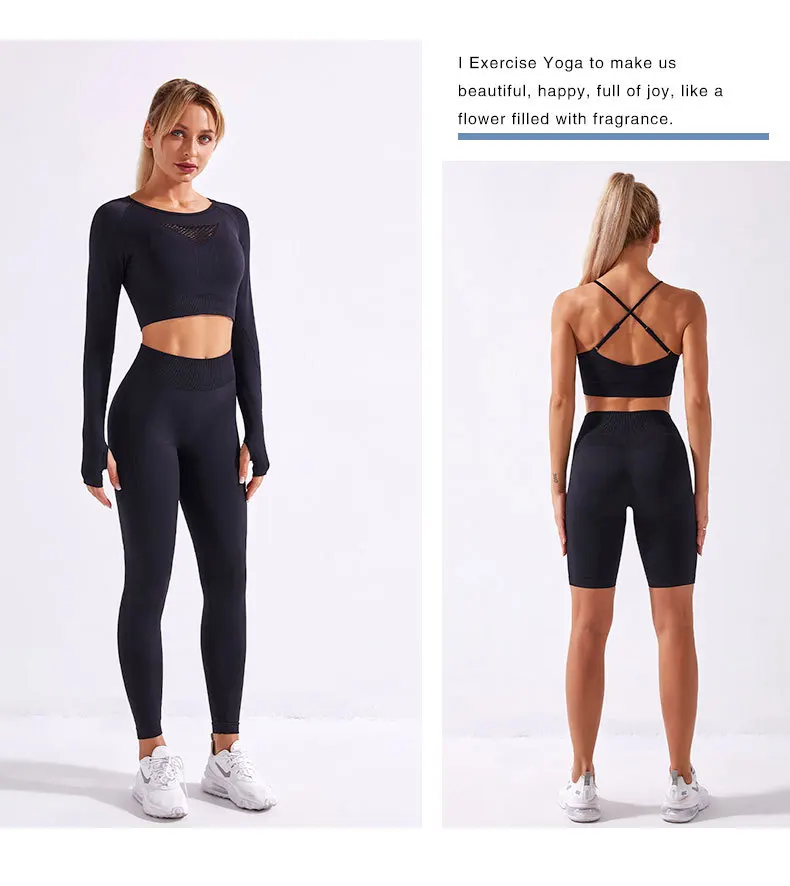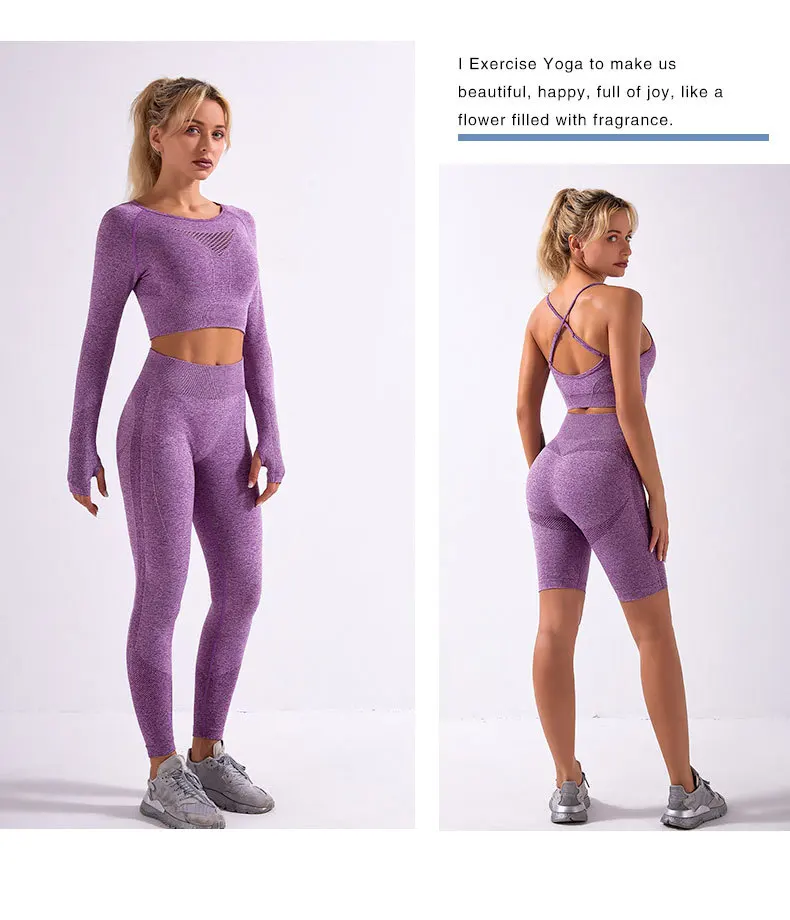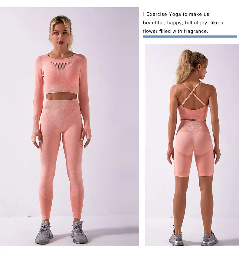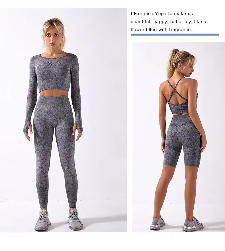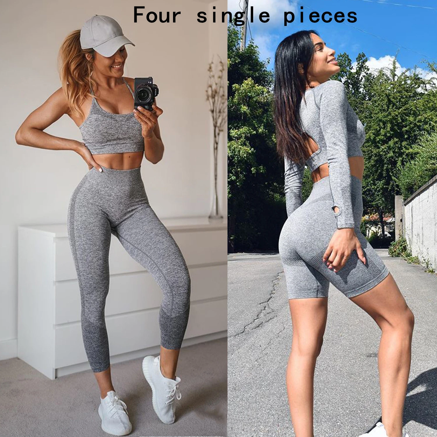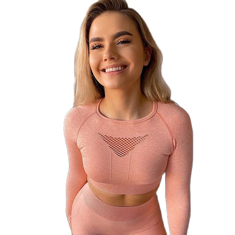 Женская бесшовная одежда для йоги Accusativu, спортивная одежда для фитнеса, занятий спортом, занятий йогой, укороченный топ с длинными рукавами, спортивный бюстгальтер, штаны для йоги