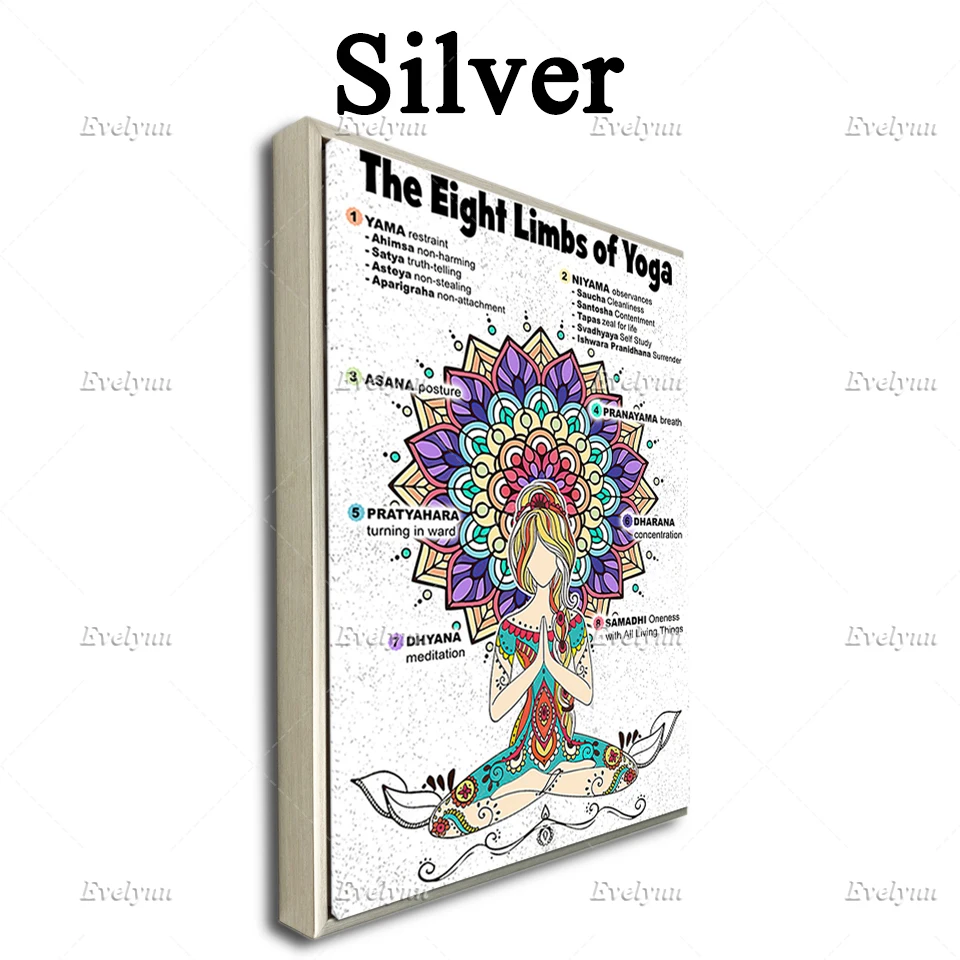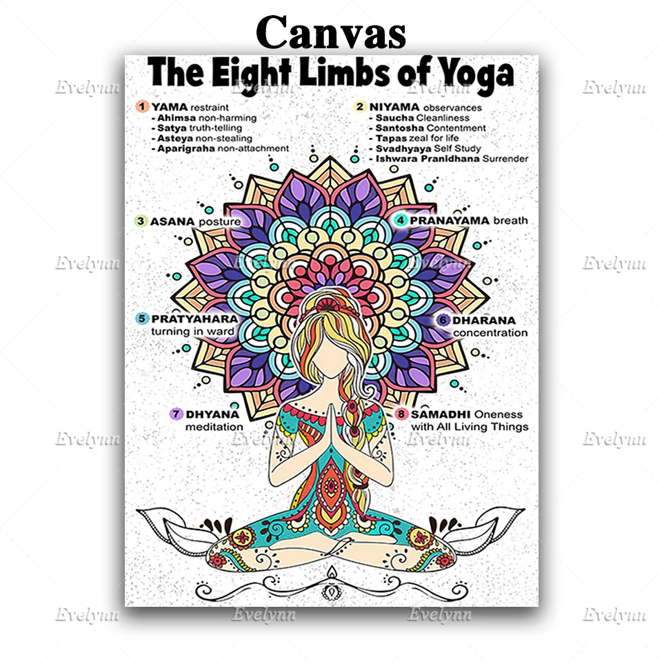 Постер с восьмиконечными цветами йоги яма Нияма Асана пранаяма Pmadhi Dhyama, настенные художественные принты, домашний декор, холст, плавающая рамка