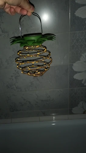 Ананасик не очень большой. Включила, пошла в ванную посмотреть в темноте. Дошла до прихожей, он уже загорелся. Чудо ананас нам очень понравился. Спасибо продавцу. Спасибо Алиэкспресс.