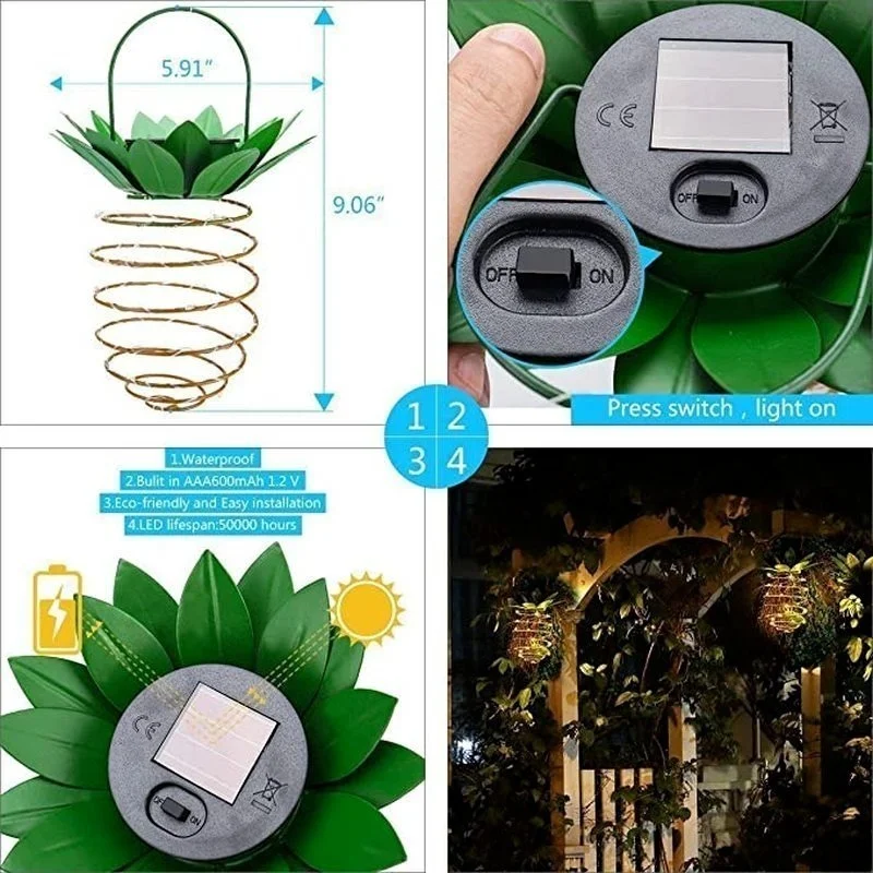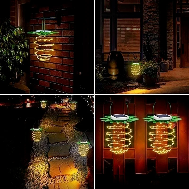 Светодиодный висячий фонарь в виде ананаса на солнечной батарее, водонепроницаемый уличный светильник с медным проводом для вечерние, праздничное украшение для свадьбы, сада, дерева