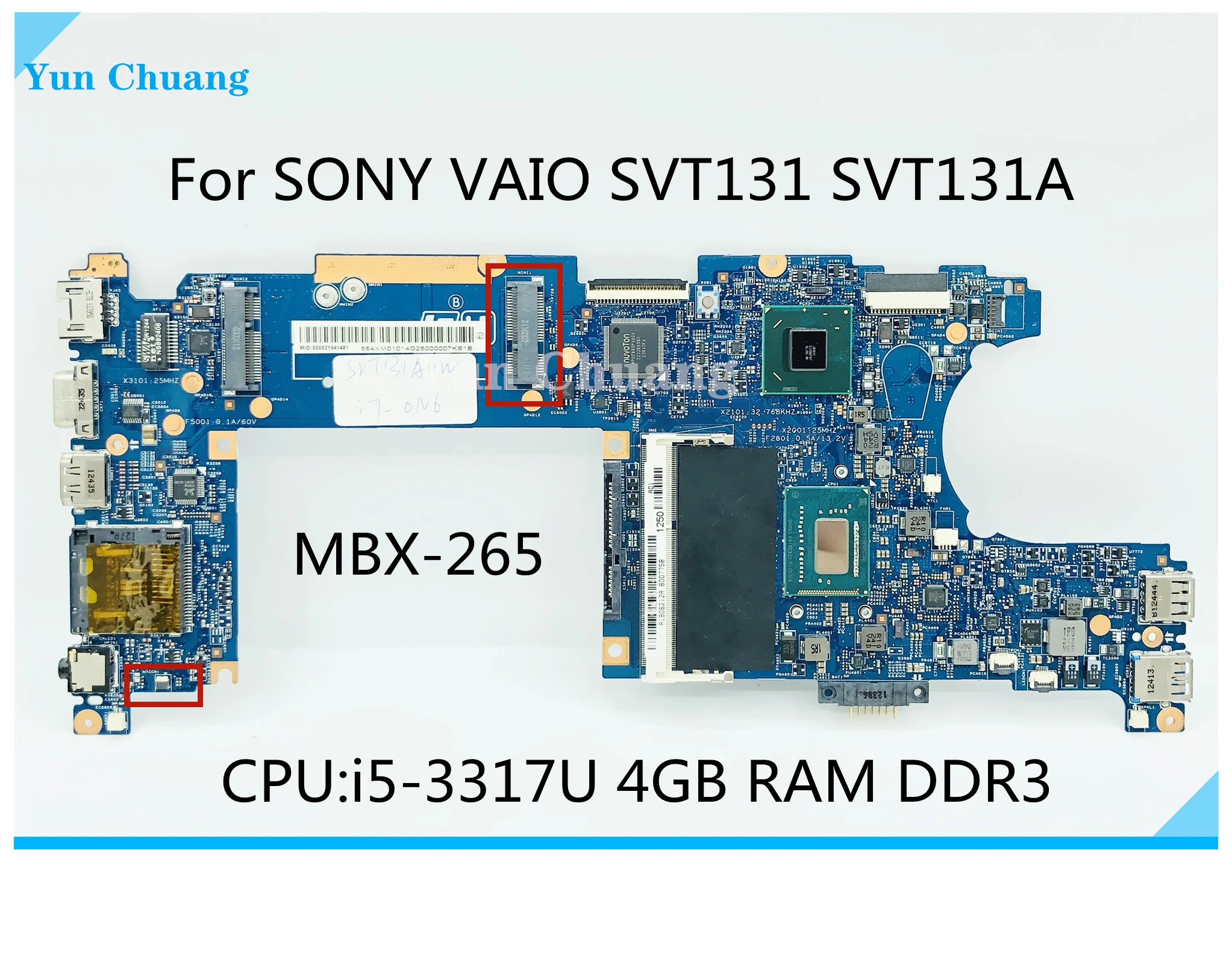 Для SONY VAIO SVT131 SVT131A MBX-265 Материнская плата ноутбука S2203-1 I5-3317U Процессор 4 Гб Оперативная память HM77 полностью протестирована