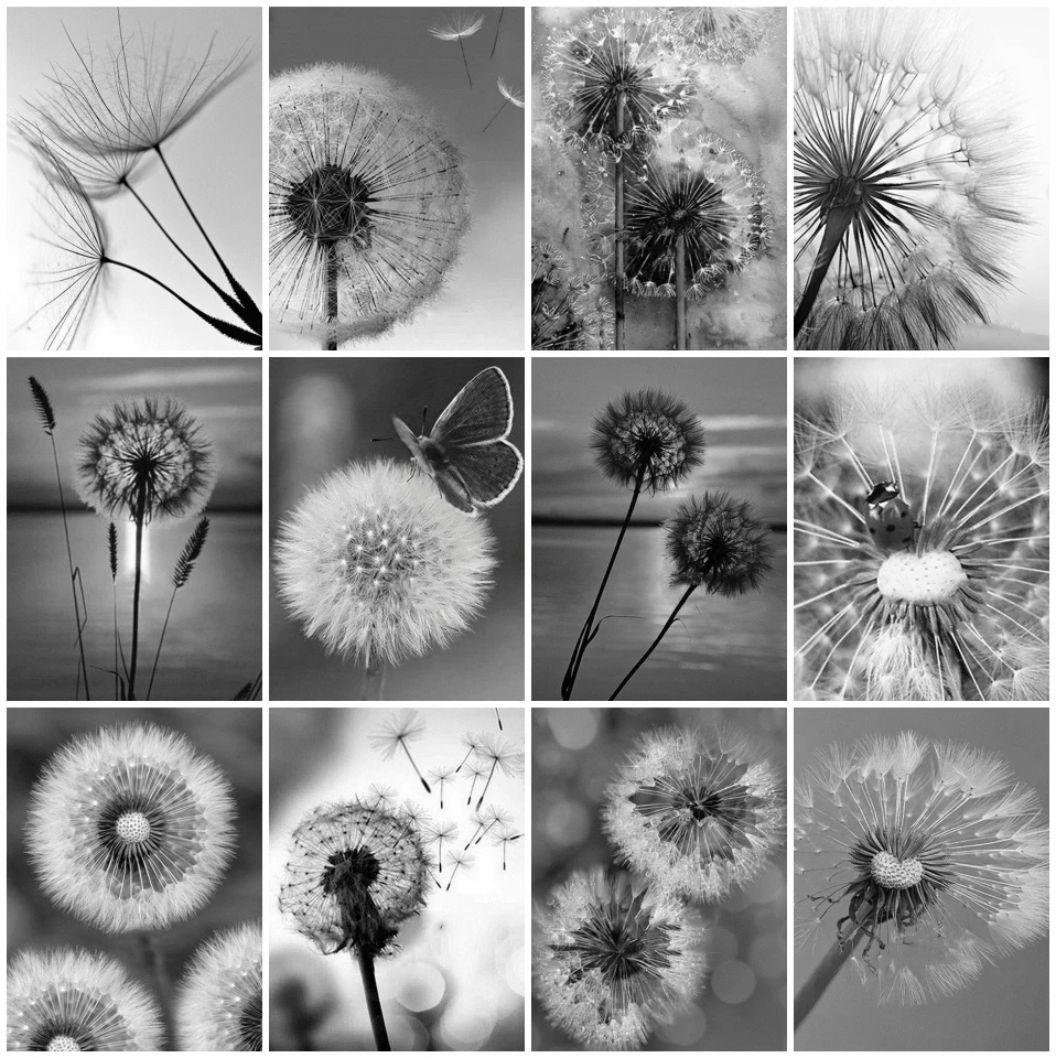 5D алмазная живопись AZQSD сделай сам, Одуванчик, цветок, подарок ручной работы, алмазная вышивка, черно-белая, украшение для гостиной, подарок