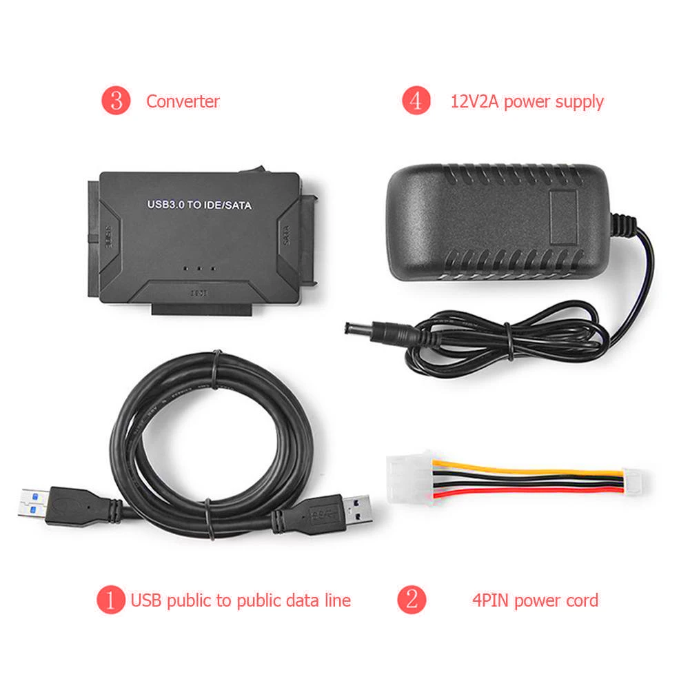 Адаптер для жесткого диска, конвертер кабеля USB 3,0 на 3 в 1 SATA ...