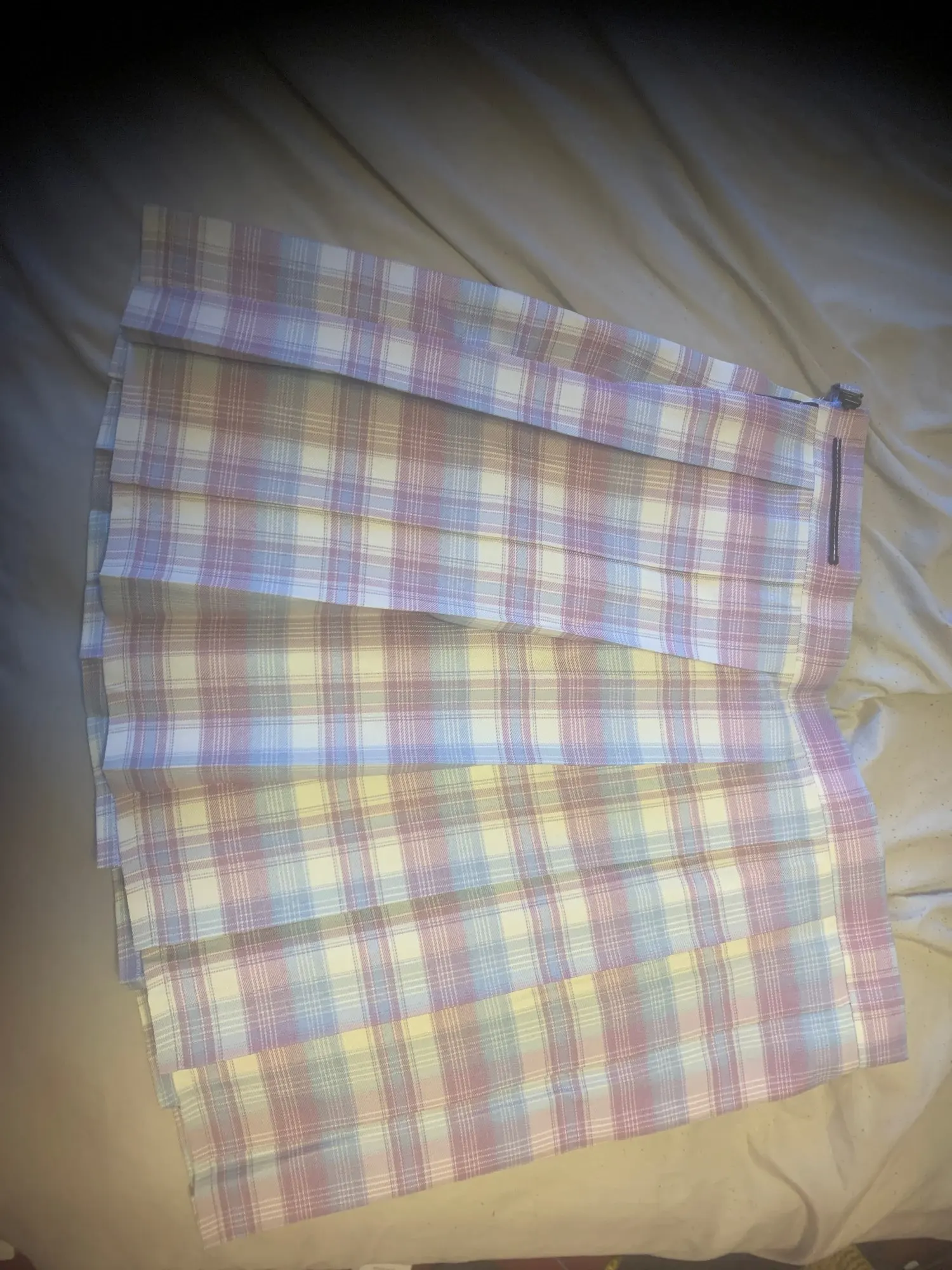 Юбка очень красивая. Он имеет скрытый карман, который является довольно большим bc вы можете легко положить там телефон, и все еще будет некоторое пространство. Он также имеет регулировку размера на талии, так что вы можете легко изменить его, когда захотите. Только то, что не совсем то же самое, это цвет. На фото он выглядит как голубой и пастельно-розовый, когда на самом деле он светло-голубой и лавандовый, но он по-прежнему действительно красивый, и мне нравится