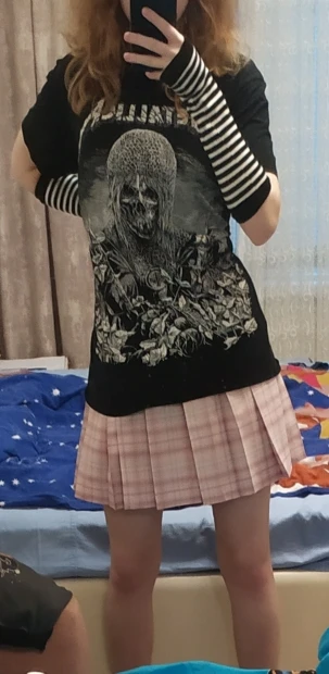 Это самая лучшая юбка в моей жизни, нежно-розовая, как на фото, застёжка удобная, талия регулируется, ткань плотная. Сочетается с большим количеством вещей. В ней я прямо девочка из аниме. Заказывала М на параметры 82/59/87, рост 166.