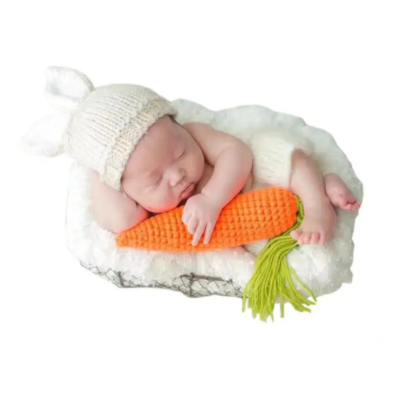Вязаный детский костюм, Пасхальный кролик, реквизит для фотосъемки новорожденных, Комплект комбинезонов, фото детской одежды, зайчик, морковка, аксессуары