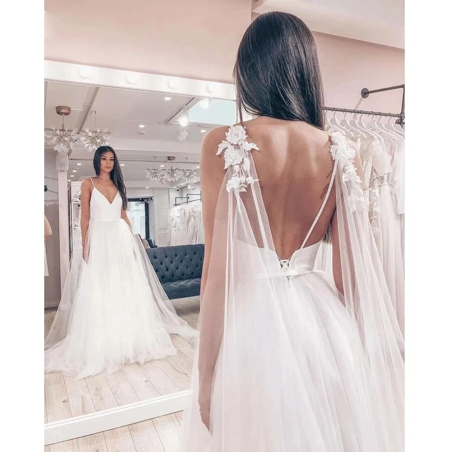 Женское свадебное платье Angelsbridep, на тонких бретелях, с цветочным принтом, с открытой спиной, ручной работы, вечерние свадебные платья