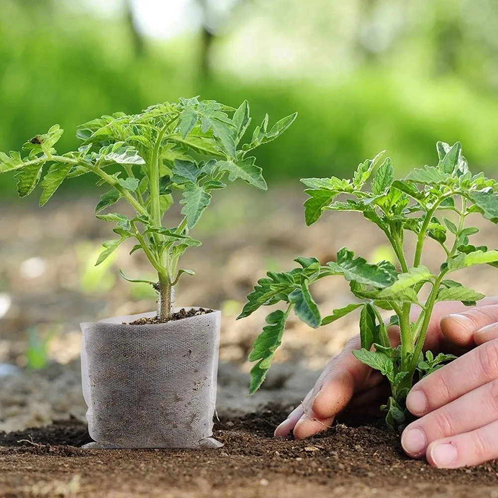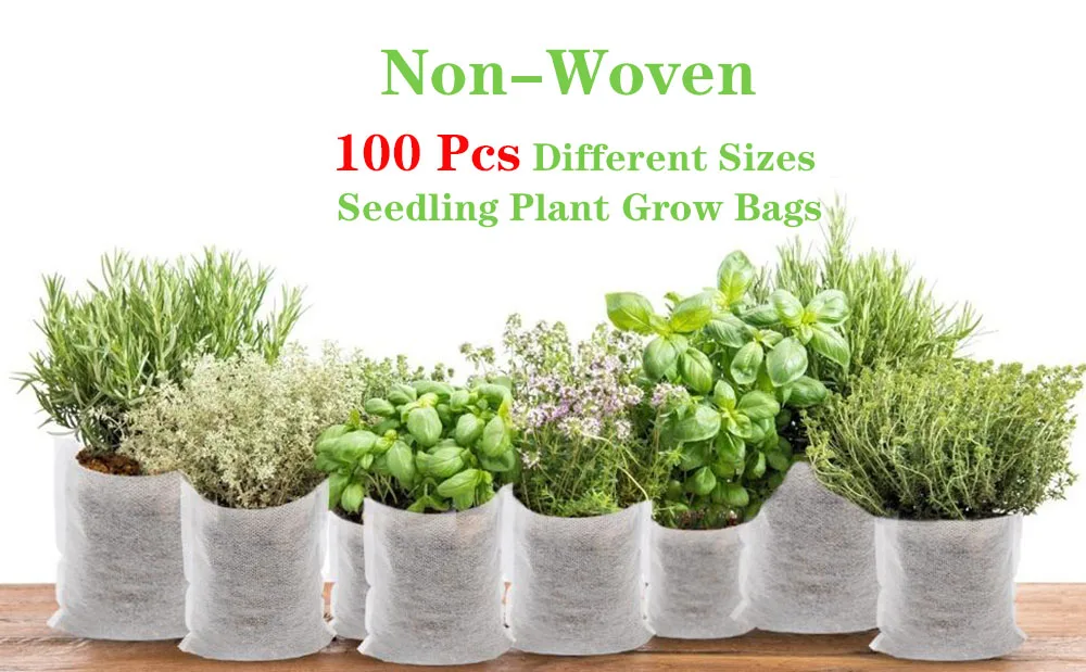 Биоразлагаемые нетканые мешки для питомника разных размеров, 100 шт., мешки для выращивания растений, садовые горшки из ткани, экологически чистые вентилируемые пакеты