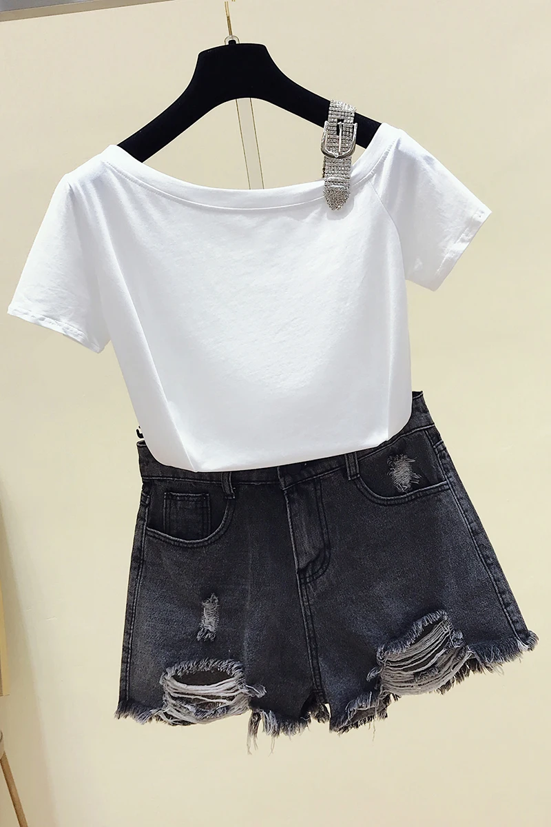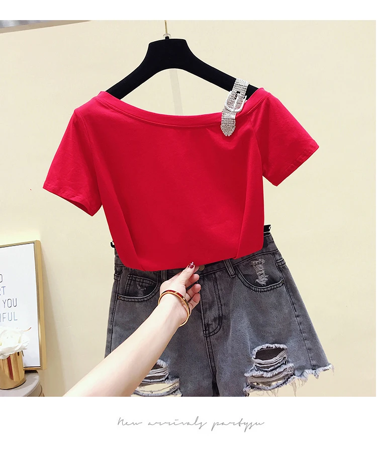 Футболка GGRIGHT, женская летняя футболка в Корейском стиле с воротником-лодочкой, хлопковые топы с коротким рукавом и вырезами, футболка, женская одежда 2021